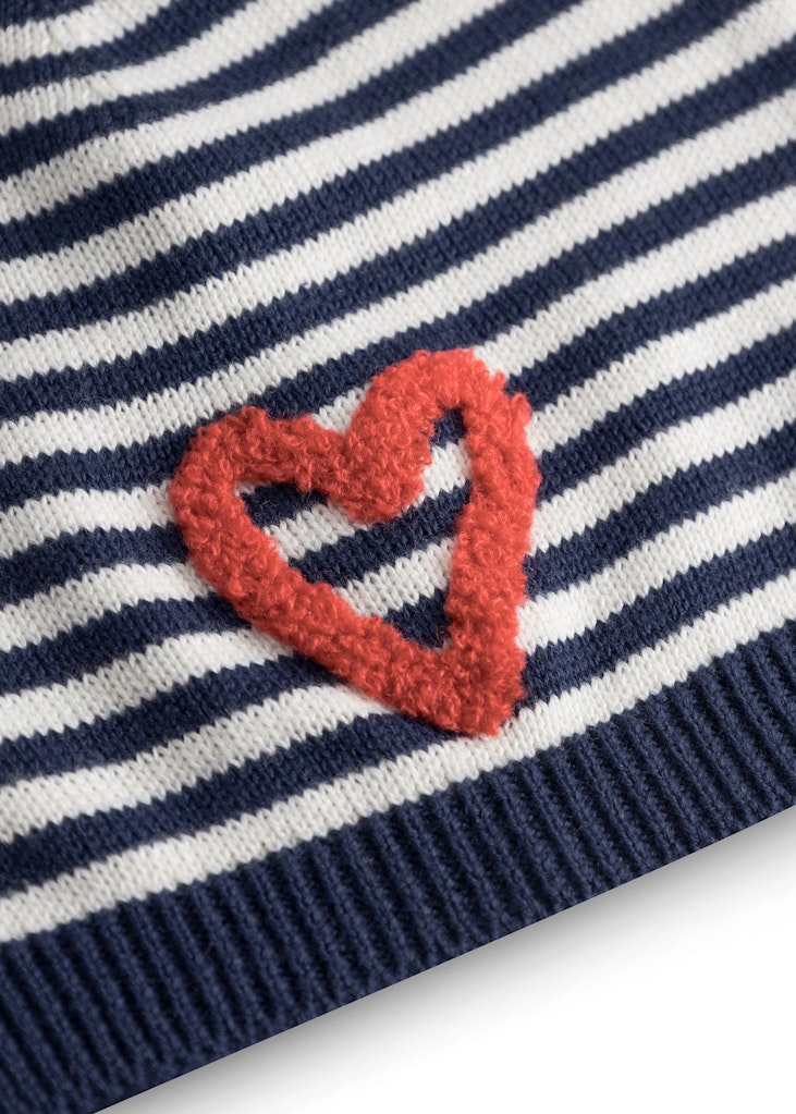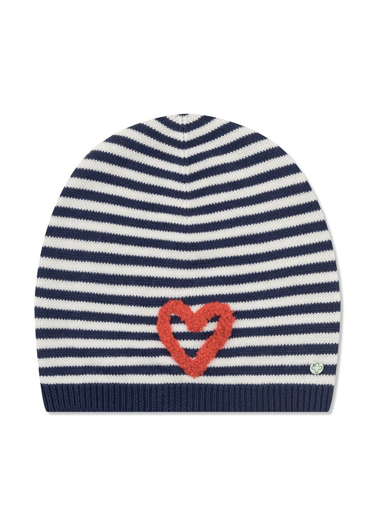 Gestrickte Mütze aus Baumwollmischung mit Streifen und Herzstickerei