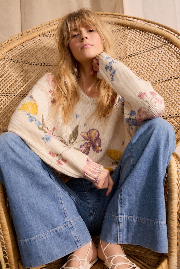 Weiche Baumwollmischung mit floralem, platziertem Alloverdruck in ausgewaschener Optik