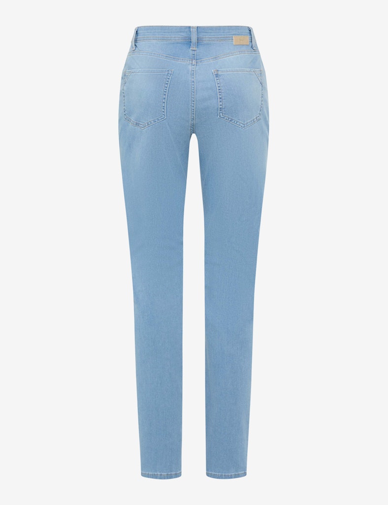 Bereichern Sie Ihre Garderobe um ein echtes Lieblingsstück, denn die Five-Pocket-Jeans im STYLE MARY interpretiert den Klassiker auf moderne Weise neu. Diese Damenjeans setzt auf eine bewährte Silhouette im Regular Fit, deren gerade Form in Kombination mit einer normalen Leibhöhe eine entspannte und zugleich schmeichelhafte Passform garantiert. Die typische Anordnung von Einschubtaschen, Coinpocket und aufgesetzten Gesäßtaschen wird durch liebevolle Details aufgewertet: Funkelnde Strassapplikationen treffen auf dezente Used-Effekte und verleihen dem ansonsten essentiellen Design eine individuelle Note. Dieser Look wird durch ein außergewöhnliches Tragegefühl ergänzt. Der hochwertige Baumwollmix liegt angenehm weich auf der Haut und sorgt durch den Stretchanteil für uneingeschränkte Bewegungsfreiheit im Alltag. Dabei hält die Premium Denim-Qualität genau das, was der Name verspricht: einen exklusiven Griff, Formbeständigkeit, eine hochwertige Verarbeitung sowie authentische Optik.