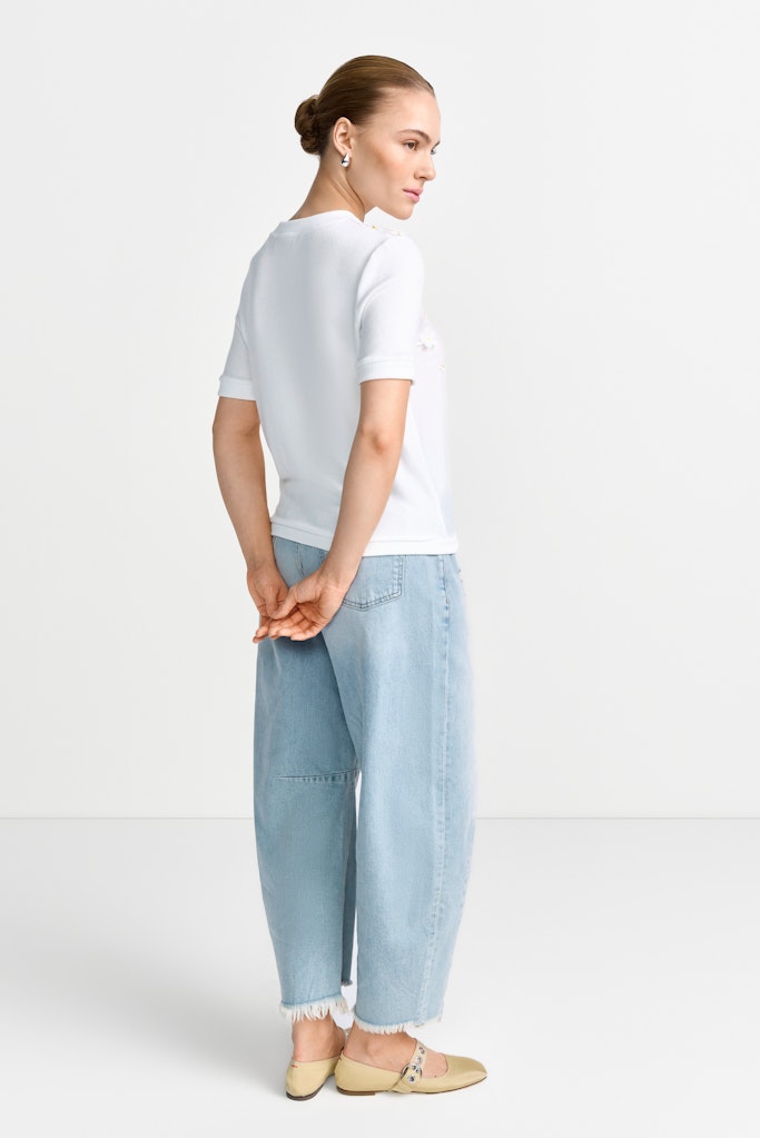Knit Mat Mix T-Shirt with Flower Application
