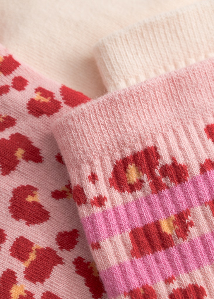 2 Paar Socken aus Baumwoll-Jacquard mit Herzmotiv und Leomuster