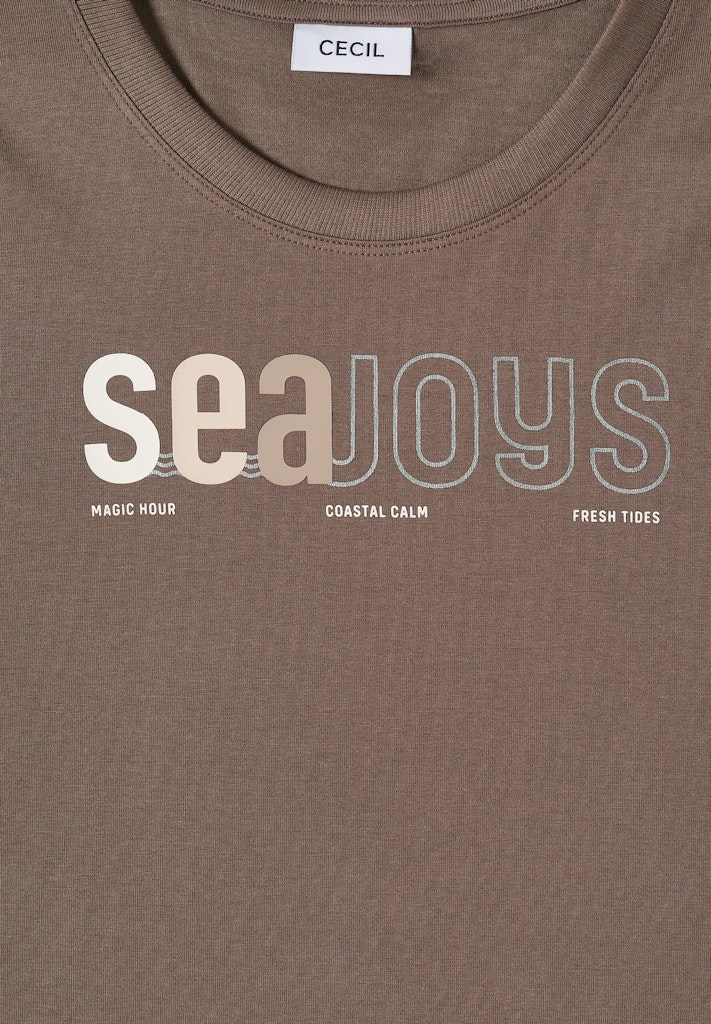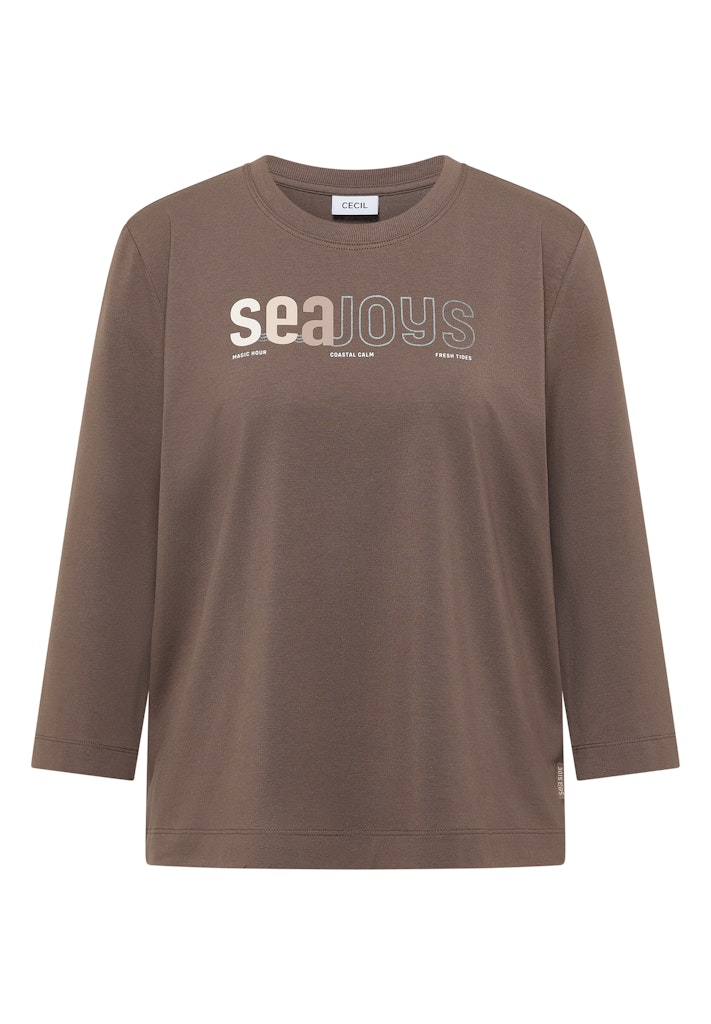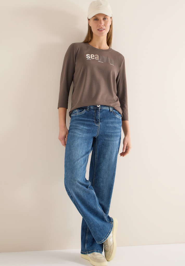 Dieses Jerseyshirt von CECIL für Damen begeistert mit einem modernen Wording-Print auf der Vorderseite und einem leicht gerundeten Saum. Der softe Baumwoll-Modalmix mit Stretchanteil sorgt für ein besonders angenehmes Tragegefühl. Ein vielseitiges Shirt für bequeme Casual-Looks mit modischem Statement. Jerseyshirt Casual Rundhals Langarm Bequem Material: 48% Baumwolle, 48% Modal, 4% Elasthan
