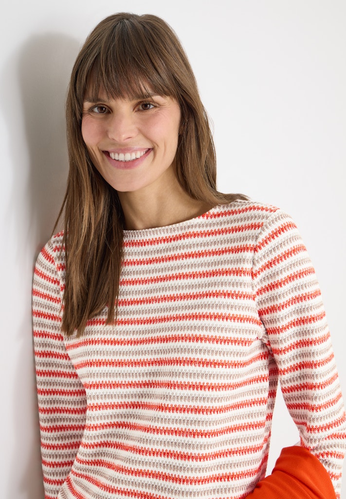 Dieses Shirt von CECIL für Damen zeigt sich im modernen Strick-Look mit lebendigen Multicolor-Streifen – ideal für frische Casual-Styles. Der U-Boot-Ausschnitt und die 3/4-Ärmel sorgen für eine feminine Silhouette. Angenehmer Tragekomfort inklusive – perfekt für deinen entspannten Alltag. Strick-Look Shirt Casual U-Boot-Ausschnitt 3/4-Arm Schlicht und gemütlich Material: 65% Polyester, 30% Viskose, 5% Elasthan