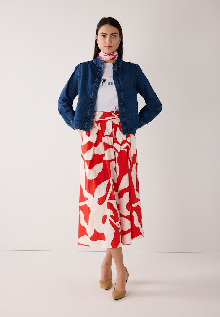 Diese moderne Jeansjacke von MORE & MORE bringt trendigen Denim-Style in Ihren Alltag. Der moderne Stehkragen und die durchgehende Knopfleiste verleihen dem Klassiker ein zeitgemäßes Update, während die lockere Passform und die softe Waschung für einen lässig-femininen Look sorgen. Perfekt zu Kleidern, Röcken und allen Arten von Hosen. Ein echtes Must-have für unkomplizierte Styles mit Trend-Faktor.