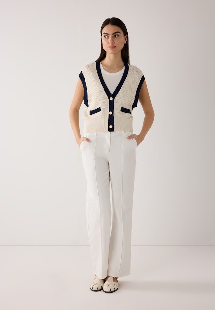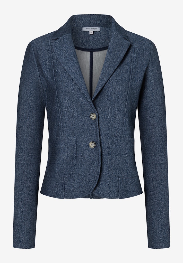 Der Jerseyblazer in Denim-Optik von MORE & MORE in feiner Piqué-Struktur lässt sich toll kombinieren. Er passt zum fließenden Chiffonrock genauso gut wie zur verwaschenen Jeans oder zur klassischen Businesshose.