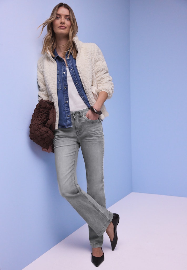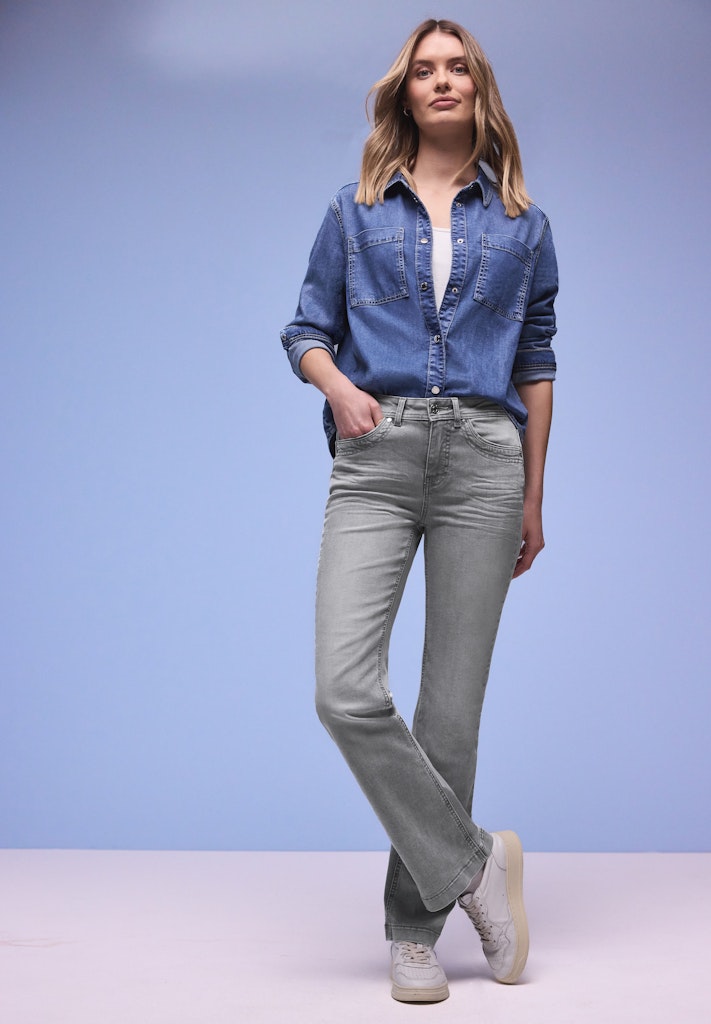 Diese Bootcut Jeans von Street One für Damen im Style Blaire überzeugt mit einer angesagten hellgrauen Waschung und figurnaher Passform. Der High Waist-Bund unterstreicht den femininen Look, während der elastische Denim hohen Tragekomfort garantiert. Perfekt für stilvolle Everyday-Outfits mit modischem Touch. Jeanshose Slim Fit Bootcut Legs High Waist Bequem und elastisch Material: 63% Baumwolle, 25% Polyester, 10% Viskose, 2% Elasthan