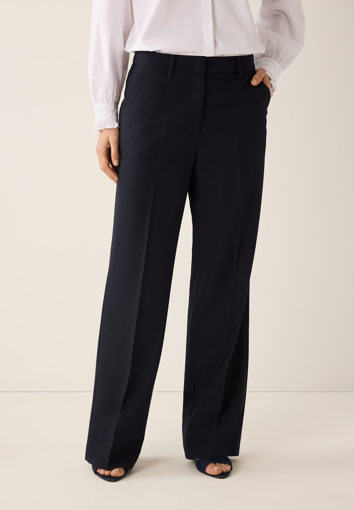 Die fein-strukturierte Anzughose von MORE & MORE mit weitem Bein und Bügelfalte wird mit passendem Blazer zum stilvollen Business-Look. Sie kann aber genauso gut mit lässigem Pullover und Sneakers kombiniert werden.