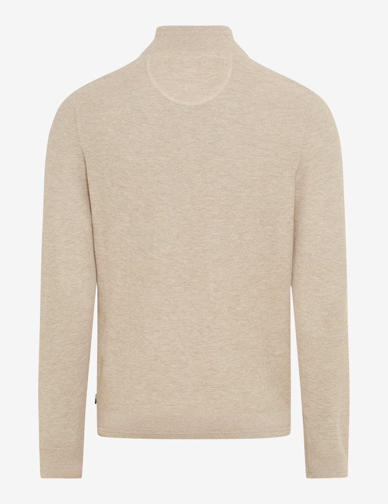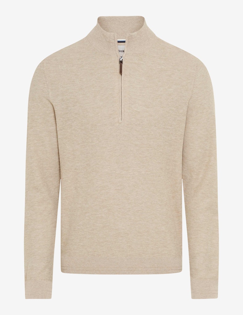 Starten Sie stilvoll in die neue Saison mit diesem smarten Pullover im Style STEFFEN, der Lässigkeit und modischen Anspruch perfekt vereint. Ein markanter Troyerkragen, ausgestattet mit einem praktischen Reißverschluss, verleiht dem gerade geschnittenen Strickpullover eine sportiv-elegante Note und bietet flexible Tragemöglichkeiten, ob hochgeschlossen oder lässig geöffnet über einem Shirt. Dieser unkomplizierte Look wird perfekt ergänzt durch die Wahl des Materials. Die Linen Mix-Qualität macht den Strickpullover zur idealen Wahl für die Übergangszeit. Die hautsympathischen Eigenschaften der Baumwolle verbinden sich hier harmonisch mit dem kühlenden, luftigen Effekt des Leinenanteils, ergänzt durch eine formbeständige Polyesterfaser. Die edle, leicht unregelmäßige Textur der Flachsfaser unterstreicht die legere Optik. Damit bietet der Herrenpullover sommerliche Leichtigkeit mit bestem Tragekomfort.
