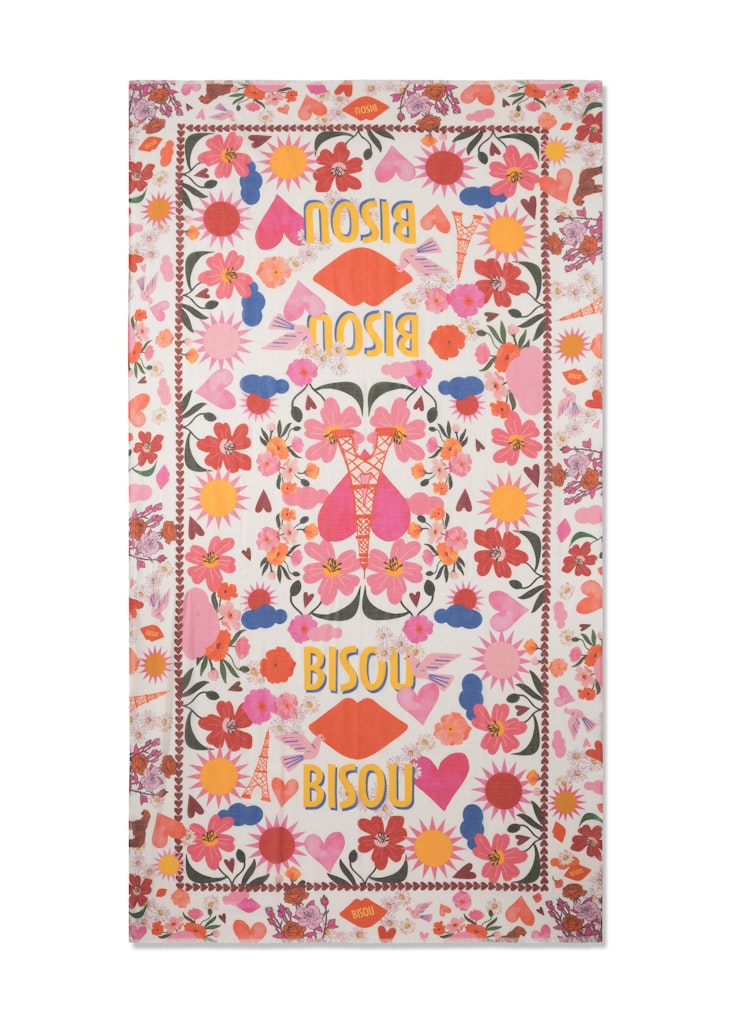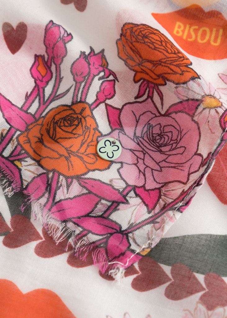 Schal aus reiner Baumwolle mit Mustermix und BISOU-Schriftzug