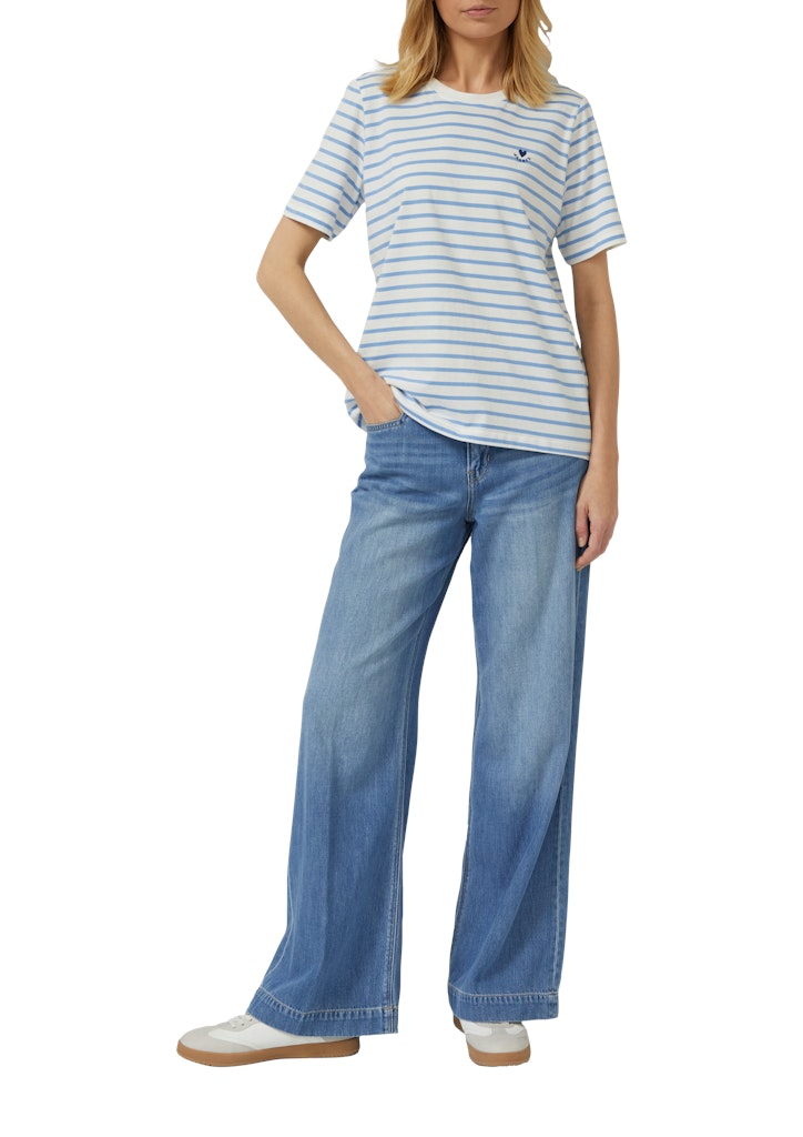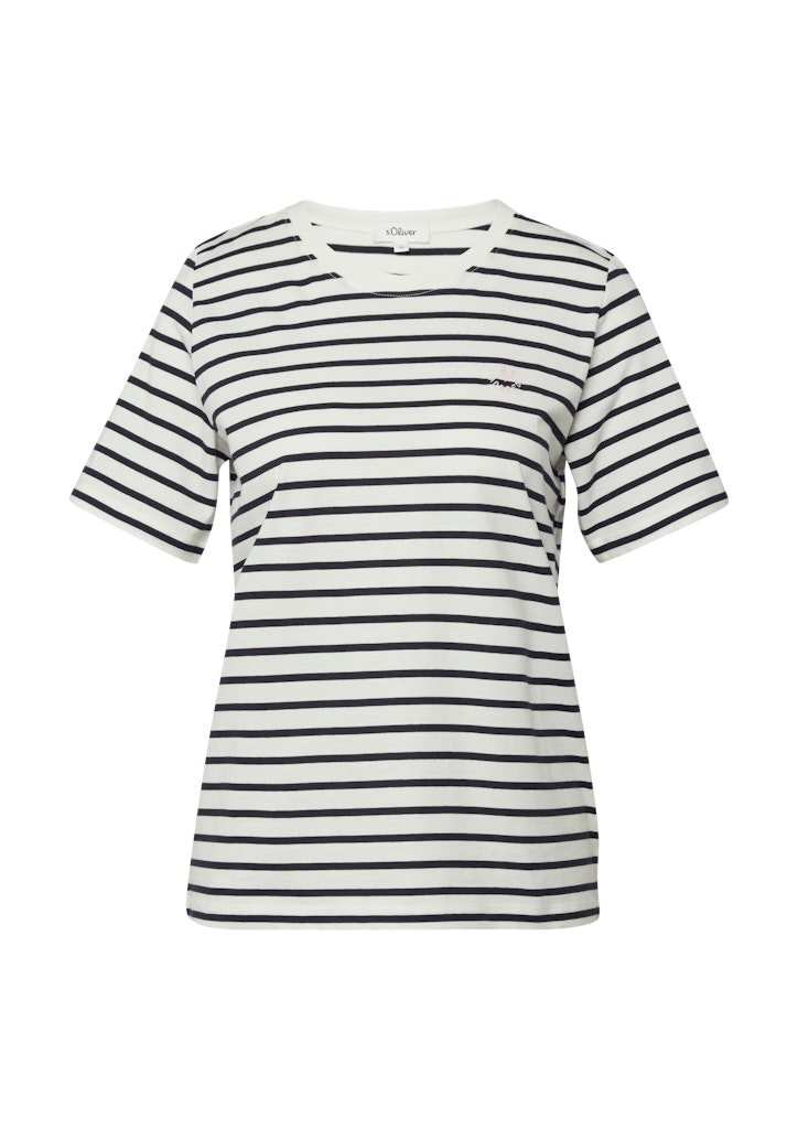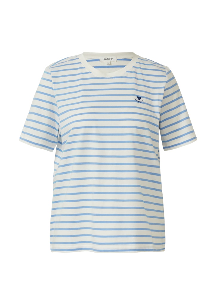Gestreiftes Jersey-T-Shirt mit Herz-Stickerei | 2174360.59G4.32