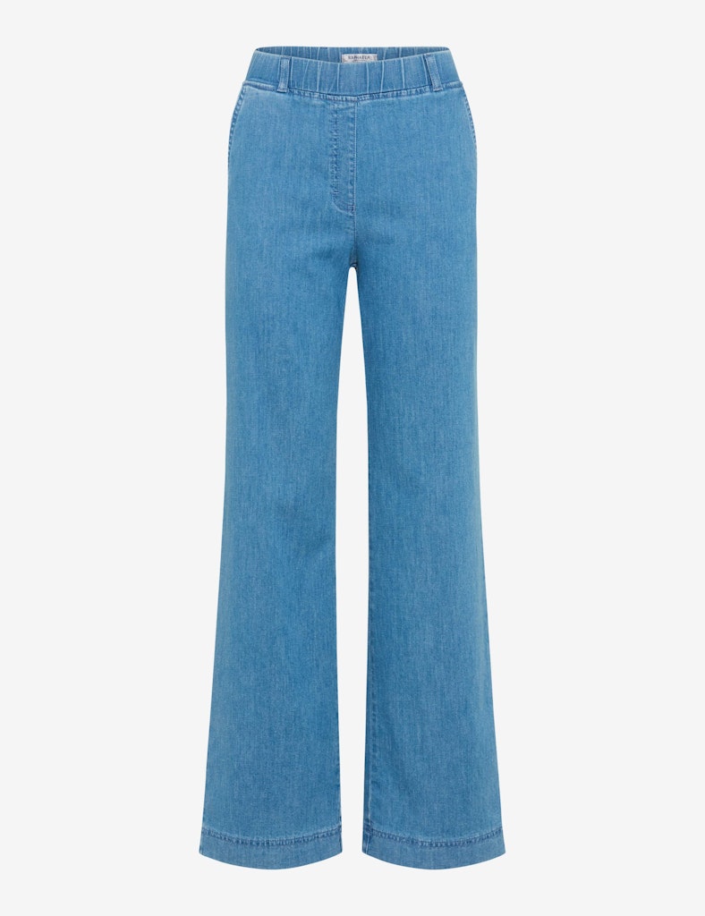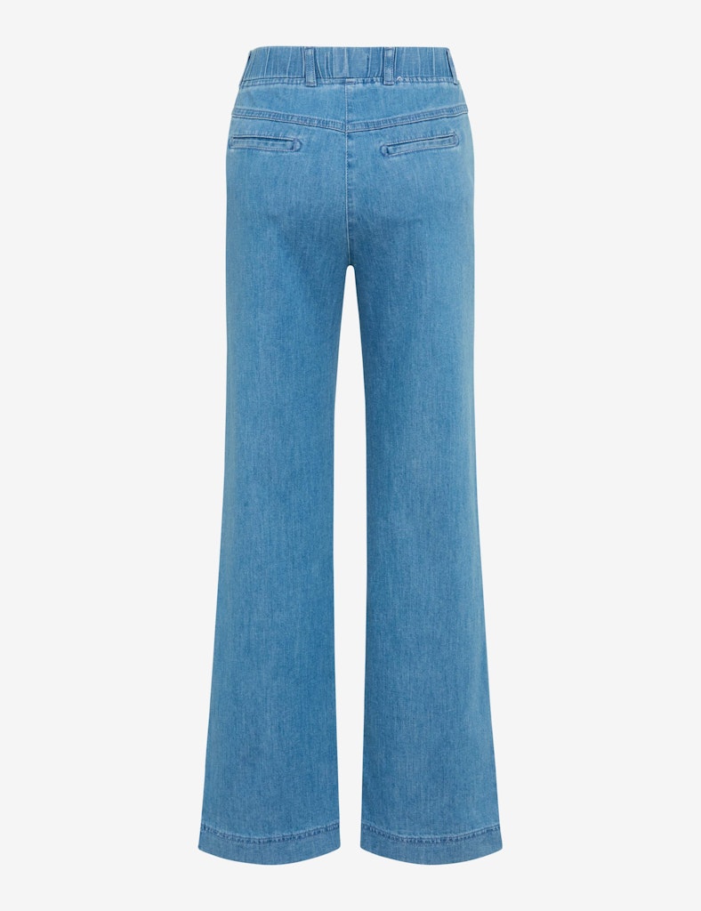 Modern, lässig, smart. Die Marlenehose im Style PAM FLARED definiert entspannten Chic ganz neu und avanciert schnell zum Must-have für einen stilsicheren Denim-Look. Mit ihrer charakteristischen weiten Form zaubert sie eine fließende, feminine Silhouette, die durch die hohe Leibhöhe optisch gestreckt wird, wobei der körpernahe Sitz im Hüftbereich elegant in das ausgestellte Bein übergeht. Der innovative Dehnbund mit Fake-Verschluss sorgt für eine makellose Passform und ein unkompliziertes Anziehen, ohne dabei einzuengen. Praktische Details wie die schrägen französischen Eingrifftaschen und die dezenten Leistengesäßtaschen fügen sich harmonisch in das cleane Gesamtbild ein, sinnvoll ergänzt durch klassische Gürtelschlaufen für individuelle Styling-Optionen. Dieses spürbare Wohlgefühl wird durch die durchdachte Materialkomposition noch unterstrichen. Ein hochwertiger Baumwollmix trifft auf die kühlenden Eigenschaften von Leinen und den besonders weichen Fall von Lyocell, was der Damenjeans einen angenehmen, sommerlich-leichten Griff verleiht. Optisch begeistert die Schlupfhose mit typischen Denim-Charakter und bietet dank der innovativen Dynamic-Qualität höchste Flexibilität und eine