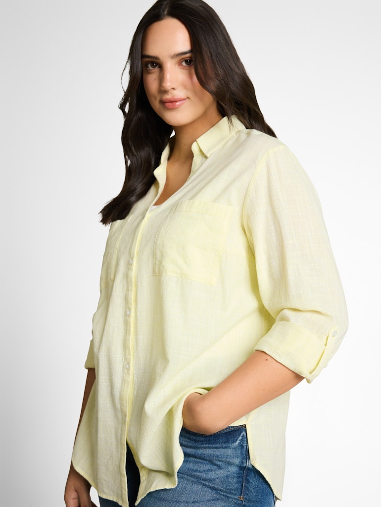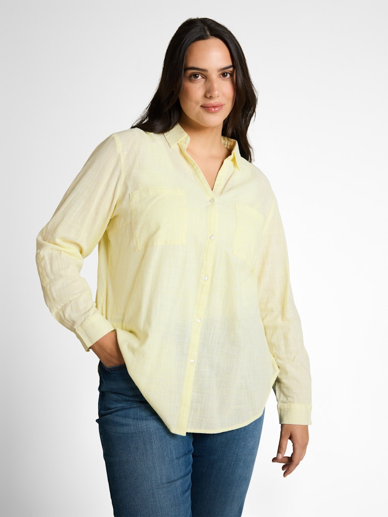 Hemdbluse mit zwei aufgesetzten Brusttaschen und Turn-up-Funktion an den Ärmeln zum Verstellen der Ärmellänge. Aus einem weichen, leicht strukturierten Baumwollstoff.
