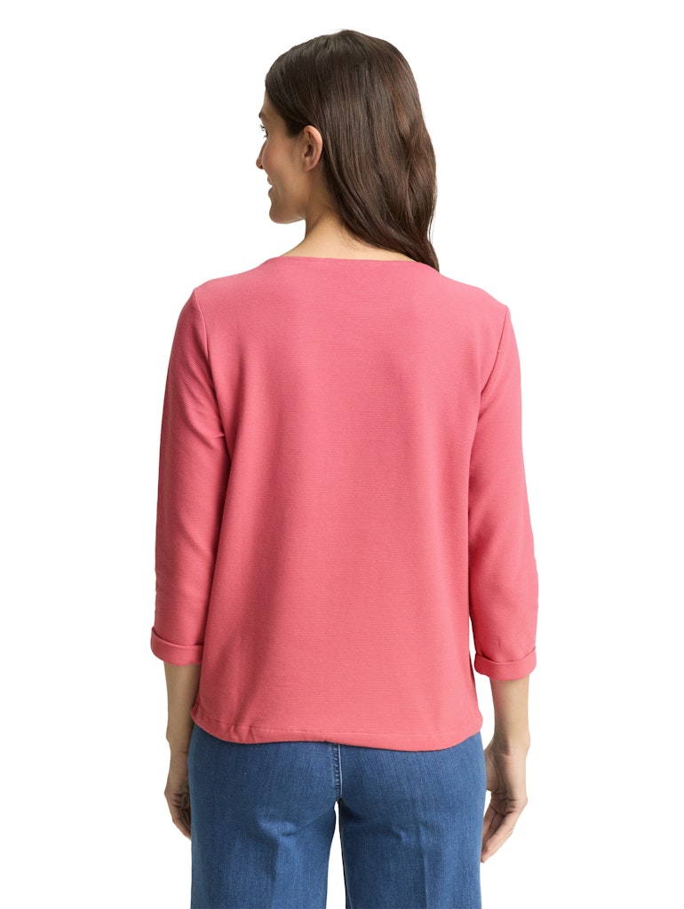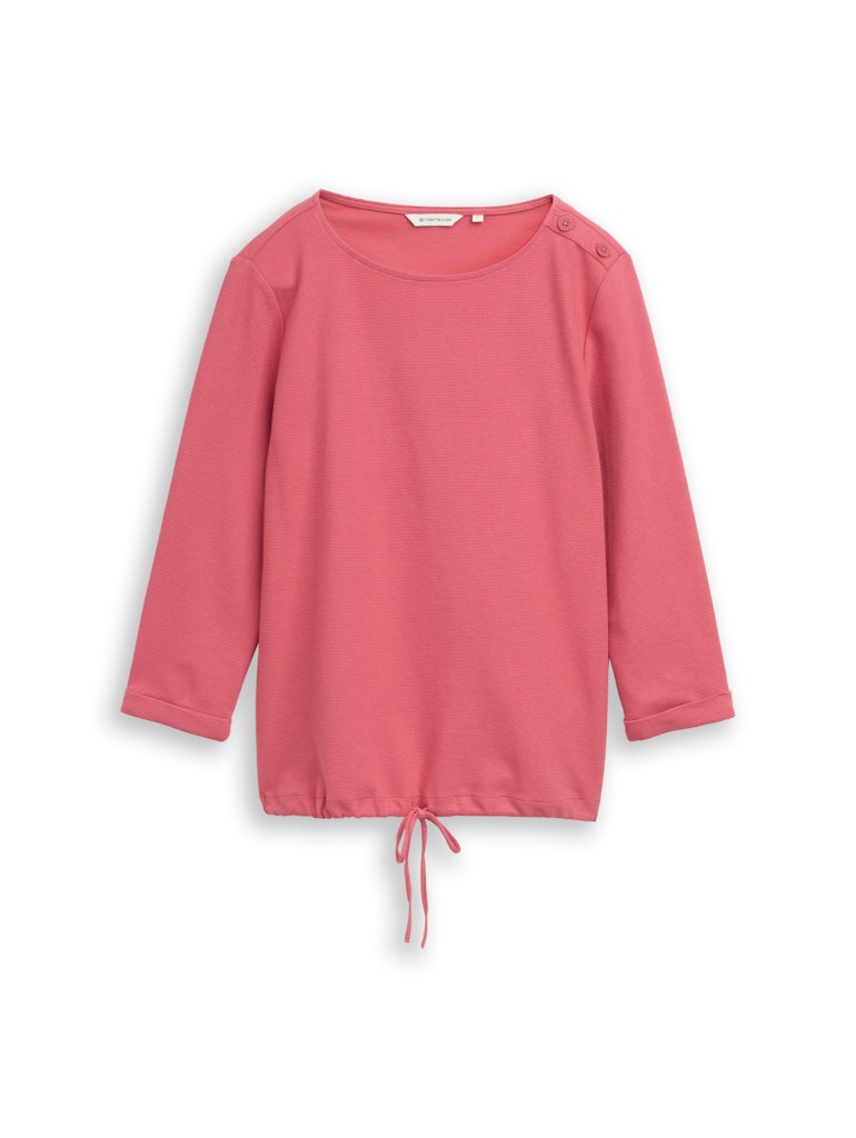 Longsleeve mit Kordelzug am Saum zum Binden und Fake-Knopfleiste an der Schulter. Aus einem strukturierten Ottoman-Stoff.