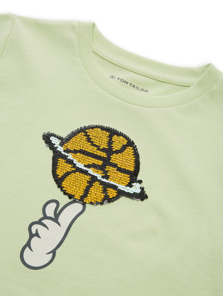 T-Shirt mit Tier-Motiv aus Wendepailletten auf der Vorderseite. Aus einem Single-Jersey-Baumwollstoff für ein weiches Tragegefühl.