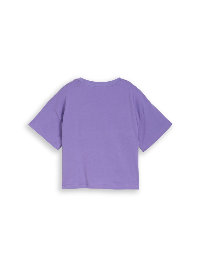 T-Shirt im modernen Cropped-Style mit glänzendem Motiv-Print auf der Vorderseite. Aus einem weichen Single-Jersey-Baumwollstoff.