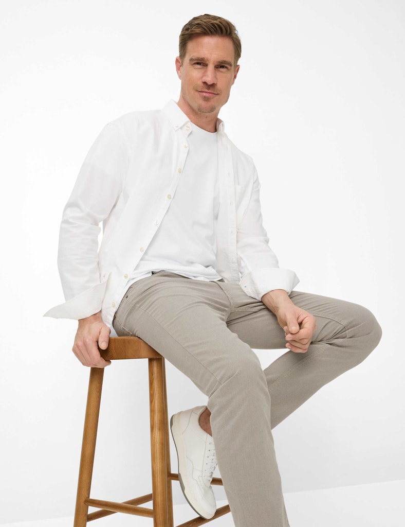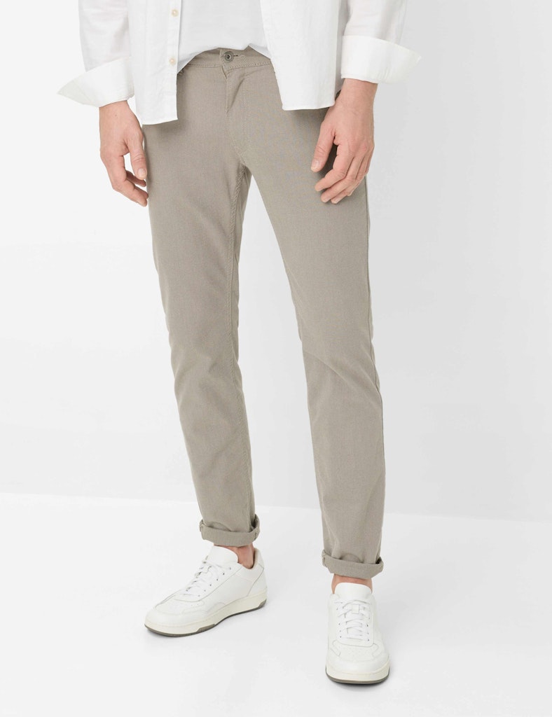 Ein vielseitiges Essential, das Stil und Komfort perfekt vereint: Die Five-Pocket-Hose im Style CHUCK präsentiert sich im Modern Fit mit schlanker Silhouette. Der Reißverschluss und Knopf, aufgesetzte Gesäßtaschen und eine Coinpocket unterstreichen den klassischen Look. Das dezente Minimal-Muster rundet das Design stilvoll ab. Gefertigt aus einem hochwertigen Baumwollmix, verspricht diese Hose exzellenten Tragekomfort durch die natürlichen, atmungsaktiven Eigenschaften der Baumwolle, die Robustheit von Polyamid und die optimale Elastizität von Elasthan für uneingeschränkte Bewegungsfreiheit und perfekte Passform. Ein besonderes Highlight ist die innovative Hi-Flex-Qualität, die der Hose eine außergewöhnliche Dehnbarkeit verleiht und für maximale Flexibilität sowie dauerhafte Formstabilität sorgt, sodass Sie sich den ganzen Tag über rundum wohlfühlen und eine stets makellose Optik genießen.