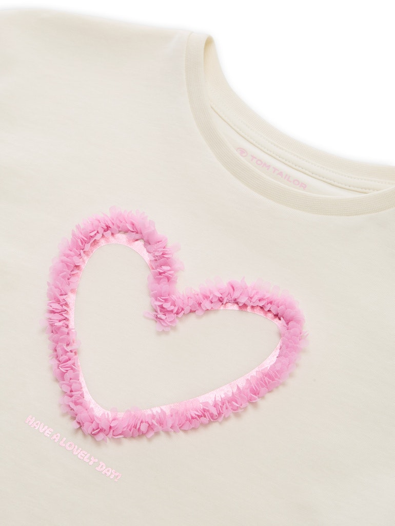 Oversize T-Shirt mit Herzmotiv auf der Vorderseite. Aus einem Single-Jersey Stoff mit Bio-Baumwolle