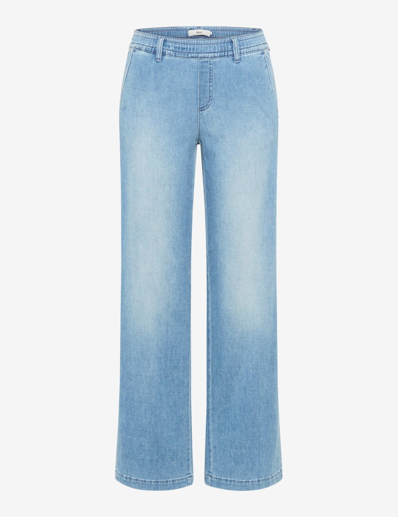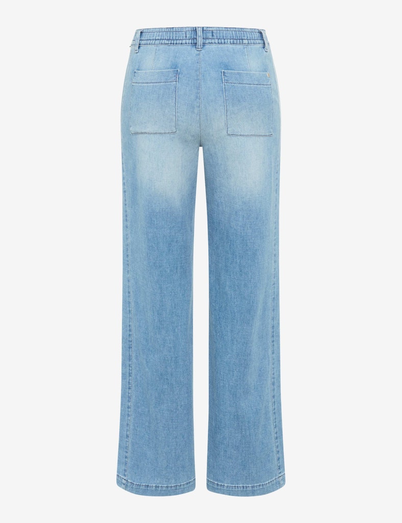 Mit der Palazzohose im Style MAINE gelingt ein trendbewusstes Outfit, das uns zeigt, wie smart Denim wirken kann. Für die Lässigkeit sorgt der Wide Leg mit weiter, gerader Silhoette und normaler Leibhöhe. Bequem und modisch zugleich ergänzt der unkomplizierte Schlupf-Gummibund die entspannte Optik der Damenjeans. Klassische französische Taschen und aufgesetzte Taschen runden den cleanen Look ab. Diese weite Flatfronthose lässt sich hervorragend zu figurbetonten Oberteilen oder lässig eingesteckten Blusen für vielseitige Looks kombinieren. Doch nicht nur der Schnitt, auch die Qualität weiß zu begeistern. Der Casual Denim steht für eine klassische Jeans-Ästhetik mit modernem Tragekomfort. Gefertigt aus einem hochwertigen Baumwollmix, profitiert die Palazzohose von den hautfreundlichen und atmungsaktiven Eigenschaften der Naturfaser, während die Beimischung von Funktionsfasern für die nötige Dehnbarkeit und Formstabilität sorgt.