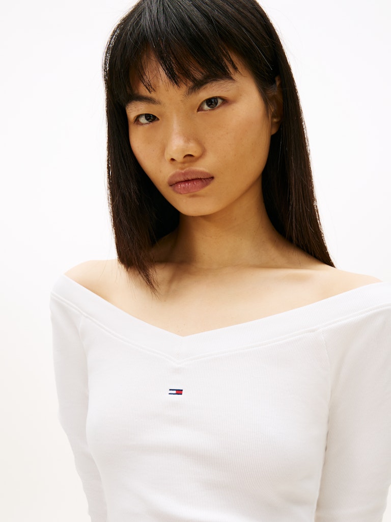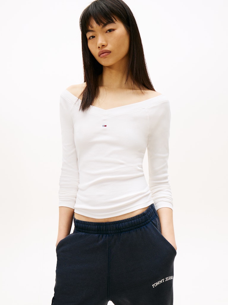 TJW SLIM OFF SHOULDER RIB LS TOP