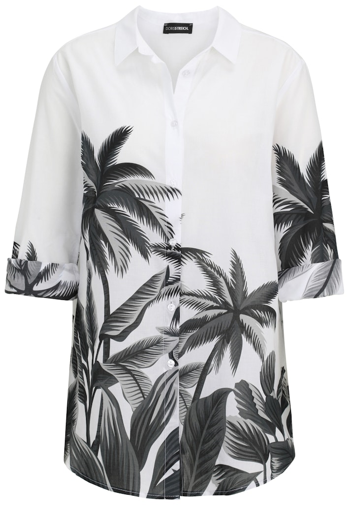 Die lässige Hemdbluse von Doris Streich ist durchgeknöpft und besticht durch ihren tonigen Palmen-Bordürenprint. Das weiche Baumwoll-Material, die fließend überschnittene Passform mit Seitenschlitzen und tiefer Falte im Rückenteil umspielen Ihre Figur