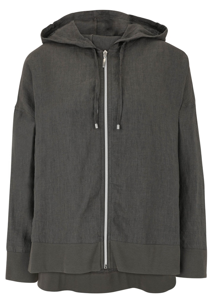 Diese lässige Leinen-Jacke von Doris Streich mit ihren überschnittenen Schultern und Hoodie ist ein Hingucker. Der Reißverschluß, die Ripp-Bündchen und die angesagte High-Low-Form mit verlängerter Rückenpartie runden das Modell ab. Die Jacke bietet