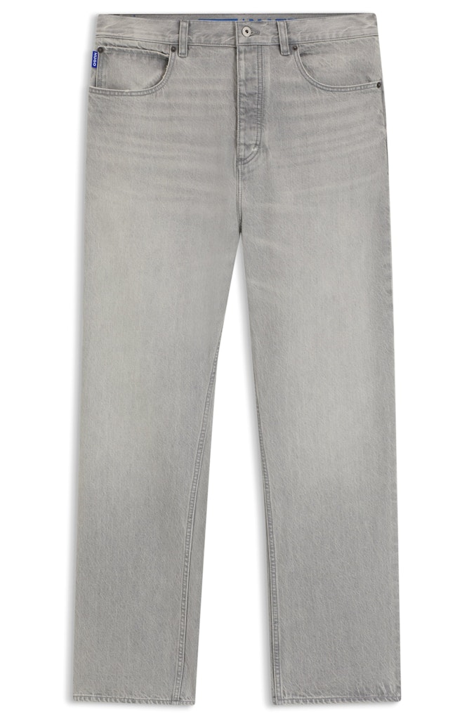 Diese HUGO Jeans im Baggy-Schnitt mit weitem Bein sind aus stone-washed Denim gefertigt und haben ein Vintage-graues Finish. Ausbleichungen und Falten-Effekte.
