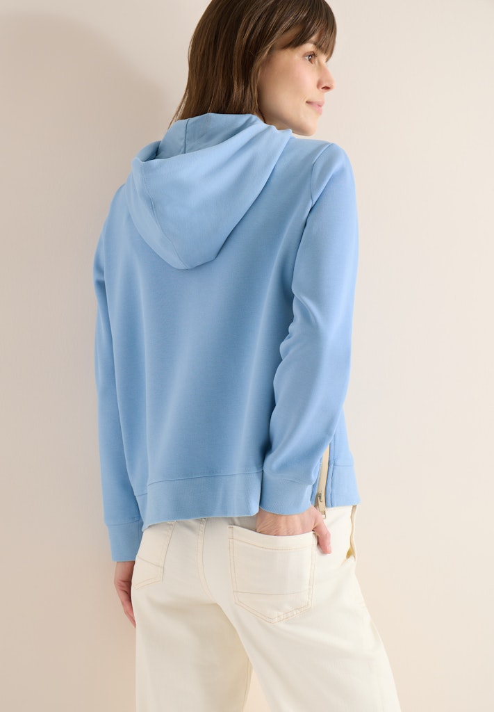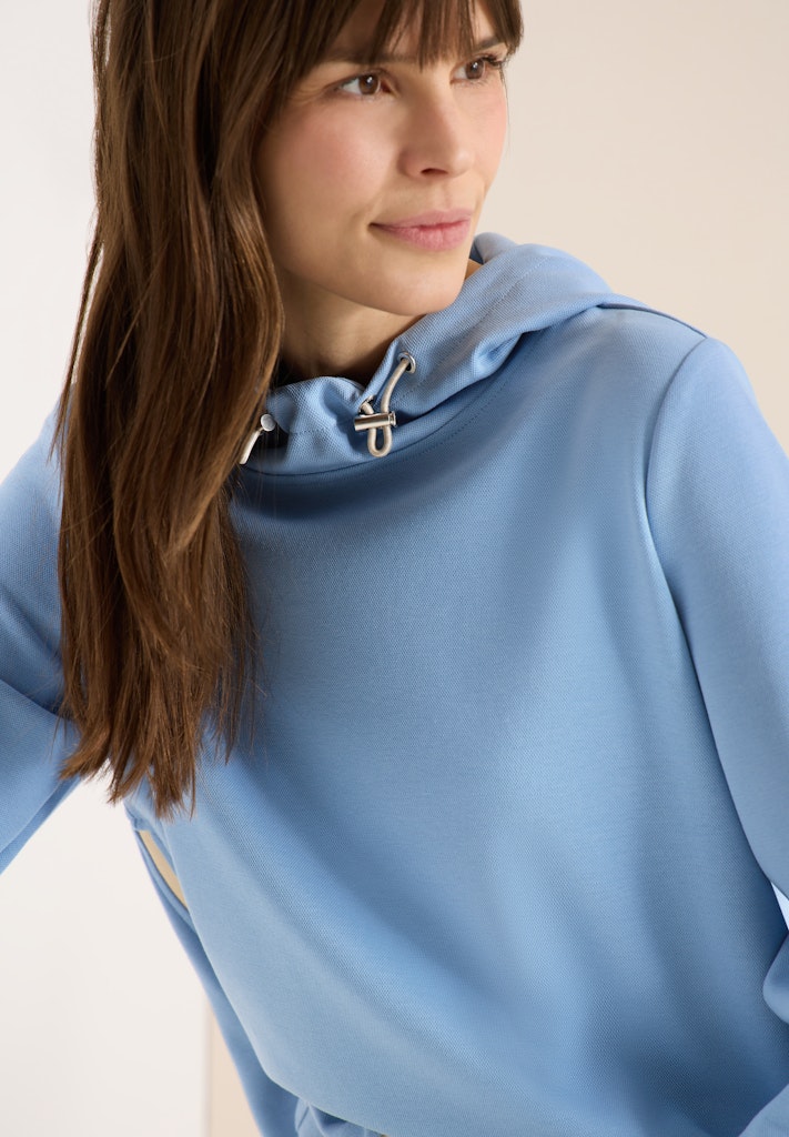 Sportlich und modern zeigt sich dieser Hoodie von CECIL mit Kapuze, Tunnelzug und seitlichen Zipper-Details. Die Unifarbe sorgt für vielseitige Kombinationsmöglichkeiten, während der bequeme Schnitt ihn zum idealen Begleiter im Alltag macht. Perfekt für deinen lässigen Casual-Look. Sweatshirt Casual Kapuze Langarm Lässig und sportiv Material: 49% Polyester, 45% Baumwolle, 6% Elasthan