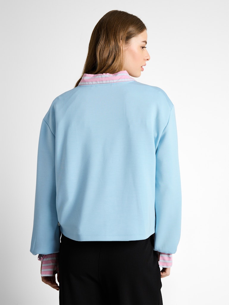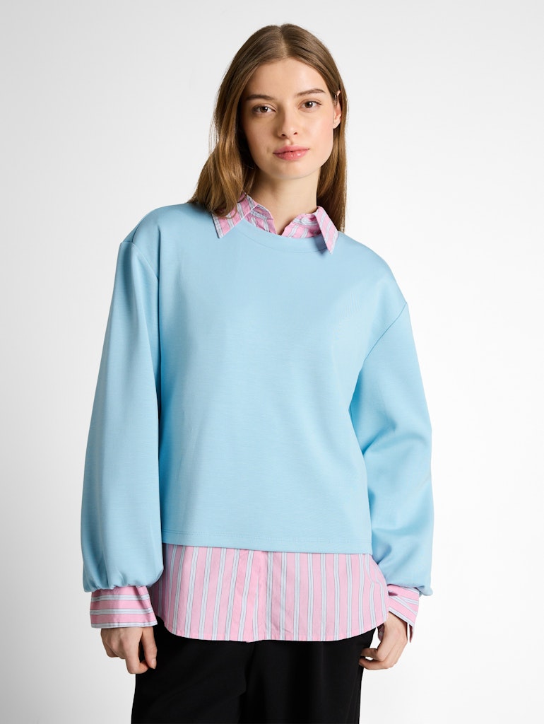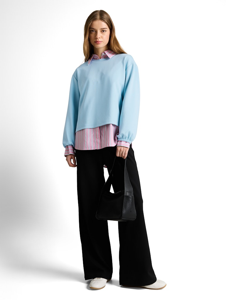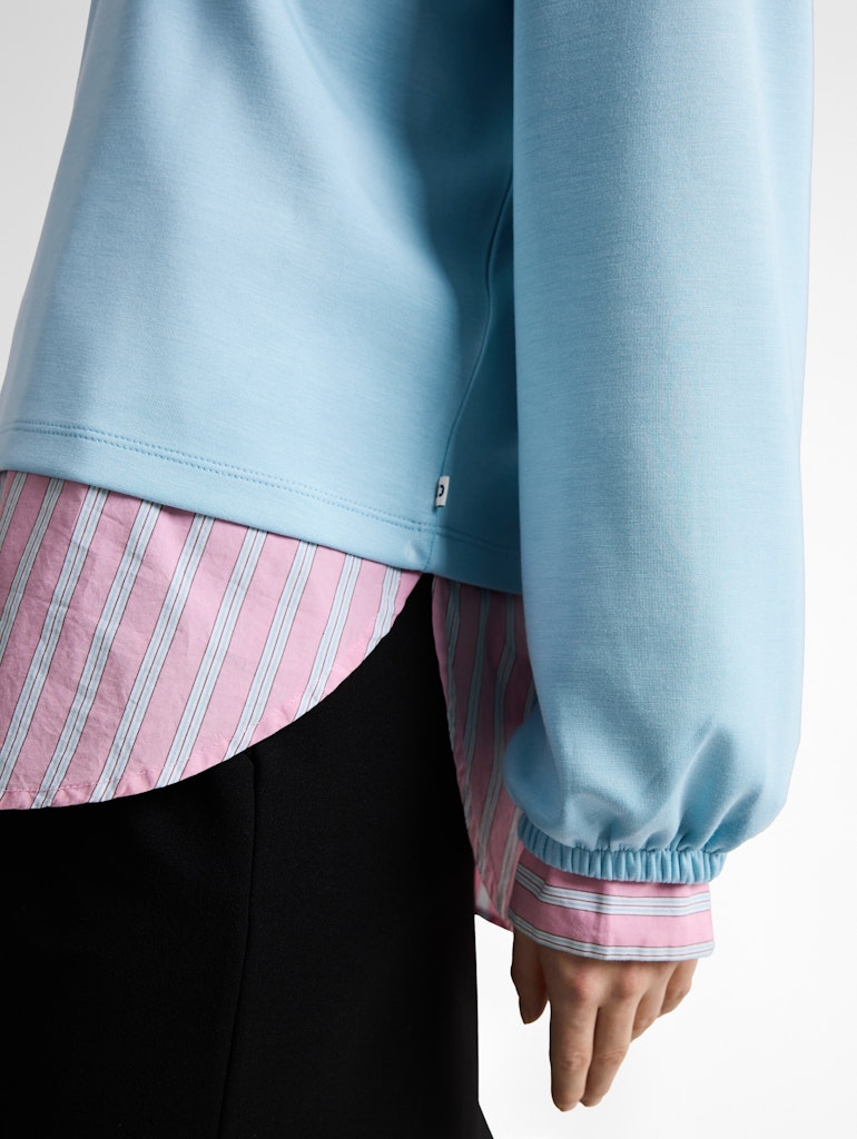 Longsleeve mit elastischem Gummibund am Ärmelsaum und überschnittener Schulternaht für eine lockere Passform. Aus einem weichen, knitterarmen und elastischen Scuba-Stoff.