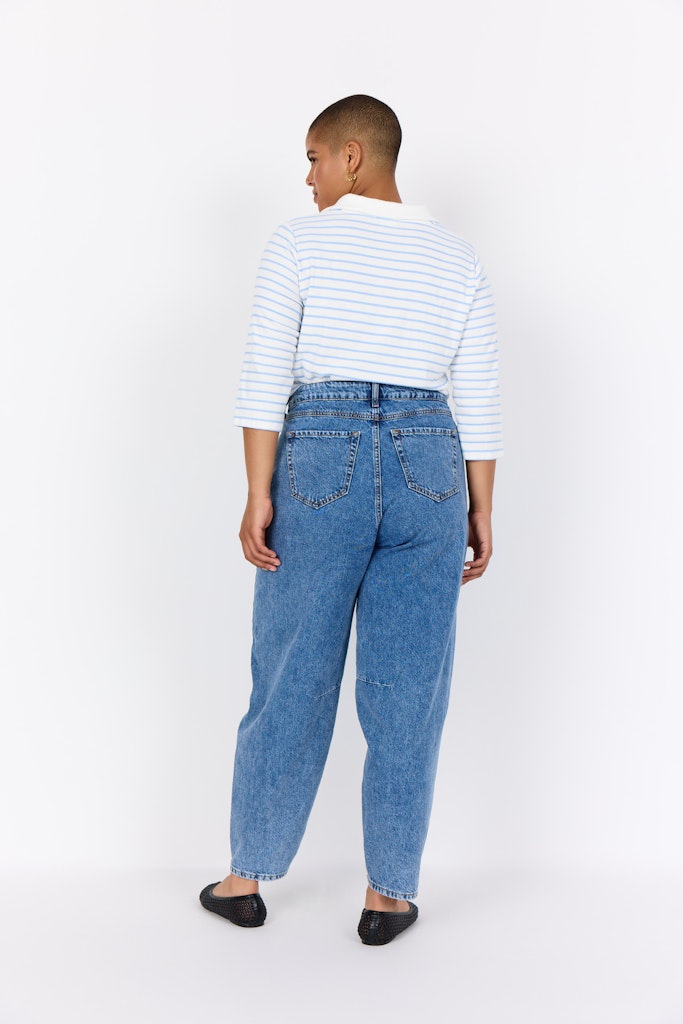 WA-CAIA 5 ist eine schöne Jeans aus 80% Baumwolle und 20% recycelter Baumwolle. Sie verfügt über einen Knopfverschluss, Gürtelschlaufen und ein strukturiertes Design mit genähten Akzenten für zusätzliche Textur. Kombinieren Sie sie mit einem lässigen T-Shirt oder einer eleganten Bluse für einen einzigartigen Look.