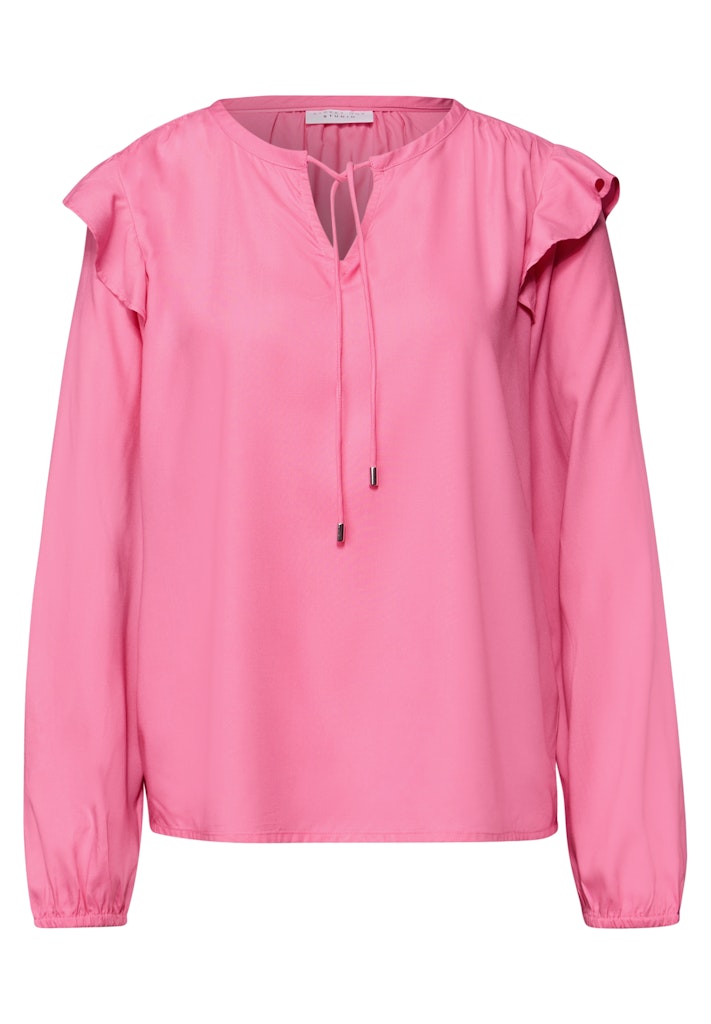 Die Tunika von Street One Studio für Damen begeistert mit verspielten Volants an den Schultern und feinen Bändern am Split Neck. Gefertigt aus weicher Viskose ist die Bluse angenehm zu tragen. Der weich fallende Look macht die Tunika zum femininen Akzent-Piece für deine Looks. Viskosebluse Casual Split Neck Langarm Verspielte Details Material: 100% Viskose