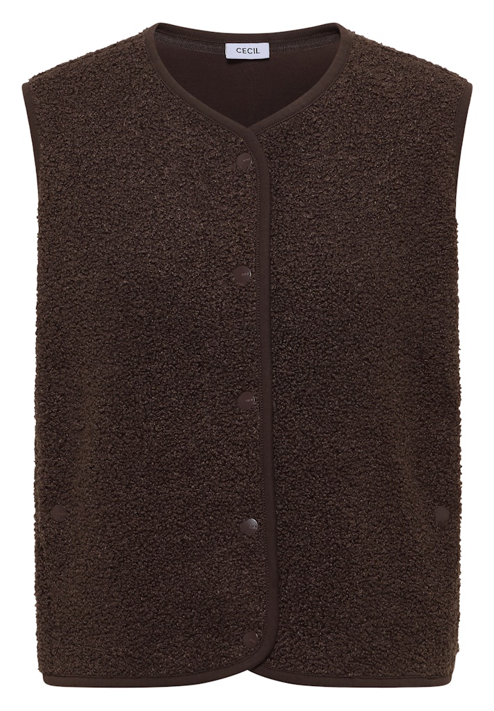 Die Weste in Woll-Optik von CECIL für Damen ist ein ideales Layering-Piece für vielseitige Casual-Outfits. Der ärmellose Schnitt und der Rundhals machen sie besonders leicht kombinierbar. Seitliche Taschen mit Knopf unterstreichen den praktischen Charakter. Perfekt zum Überziehen an kühleren Tagen für einen entspannten Look. Weste in Wolloptik Casual Rundhals Ärmellos Ideales Layering-Piece Material: 100% Polyester