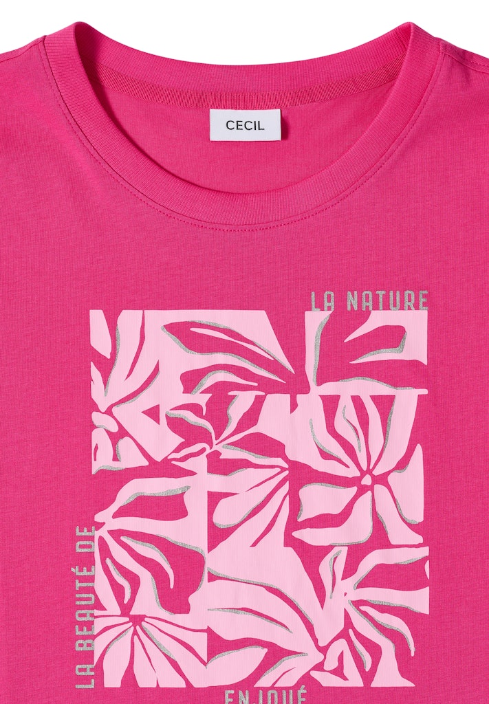 Dieses T-Shirt von CECIL für Damen bringt mit seinem floralen Frontprint frische Akzente in deinen Look. Reine Baumwolle sorgt für ein angenehmes und natürliches Tragegefühl. Rundhals und kurze Ärmel machen das Shirt besonders unkompliziert. Perfekt für entspannte Alltags-Outfits. Baumwollshirt Casual Rundhals Kurzarm Florales Motiv Material: 100% Baumwolle