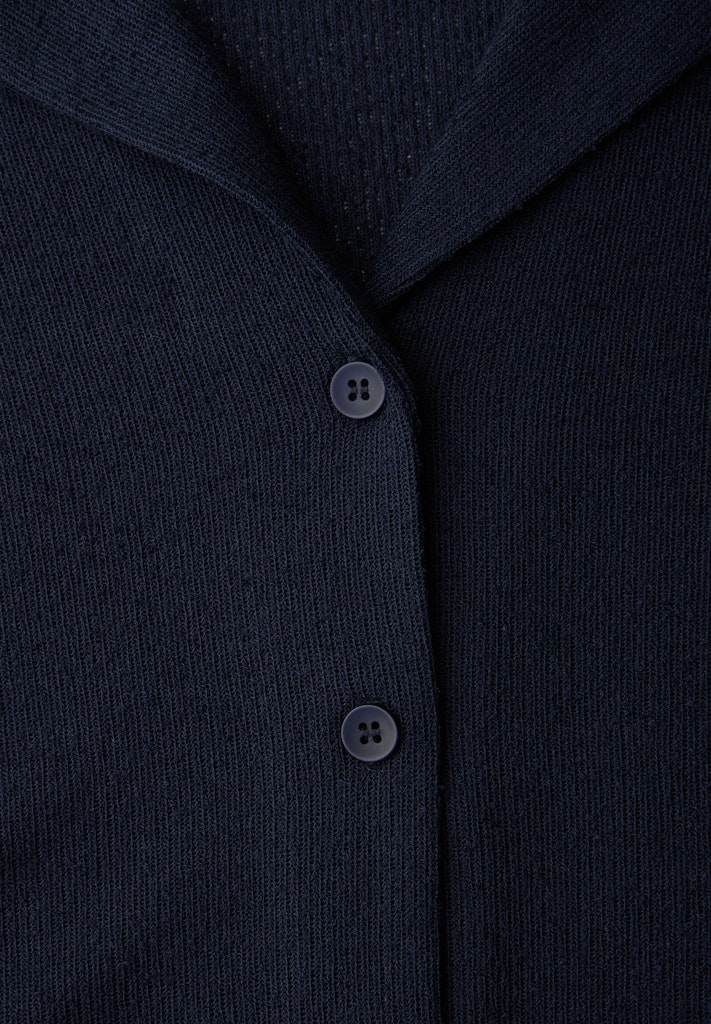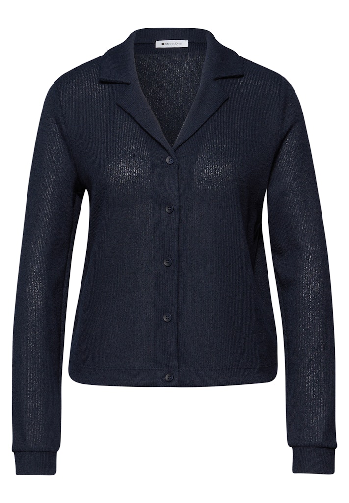 Die Strick-Look Jacke von Street One für Damen kombiniert Komfort mit modernen Details. Der V-Ausschnitt mit Bowling-Krangen und die Knopfleiste verleihen ihr eine modische Ausstrahlung. Der softe Viskosemix mit Stretch sorgt für ein angenehmes Tragegefühl. Ein vielseitiger Begleiter für entspannte Alltagslooks. Strick-Look Jacke Casual V-Ausschnitt Langarm Bequem und vielseitig Material: 50% Viskose, 47% Polyester, 3% Elasthan