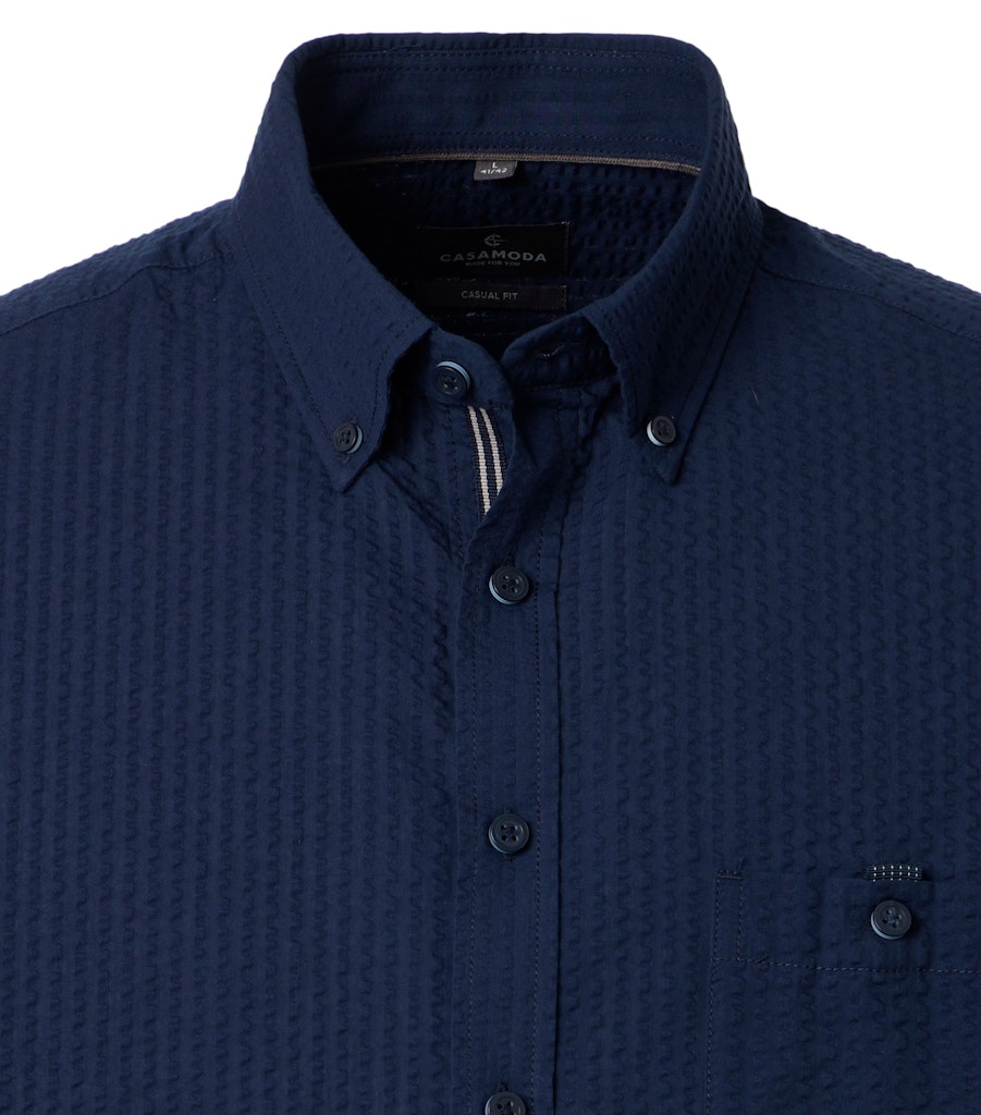 Das Freizeithemd überzeugt durch seine normale Passform im Casual Fit und sorgt für angenehmen Komfort im Alltag. Der klassische Button-Down-Kragen passt hervorragend in legere Freizeitlooks und verleiht dem Hemd einen stilvollen Akzent. Die hochwertige Baumwolle in Seersucker-Qualität zeichnet sich durch ihre leicht gekräuselte und luftige Oberfläche aus, die auch an wärmeren Tagen für ein angenehmes Tragegefühl sorgt. Das dezente Streifenmuster verleiht dem Hemd eine moderne Note und ermöglicht vielseitige Kombinationsmöglichkeiten, etwa mit einer Jeans oder einer lockeren Stoffhose. Die praktische Brusttasche ergänzt das funktionale Design und bietet Platz für kleine Alltagsgegenstände. Besonders praktisch ist die bügelfreie Eigenschaft des Seersucker-Gewebes, denn Sie sparen sich zeitaufwendiges Bügeln und sind schnell wieder bereit für den nächsten Anlass. Ideal für entspannte Freizeitaktivitäten oder legere Treffen im Freundeskreis.