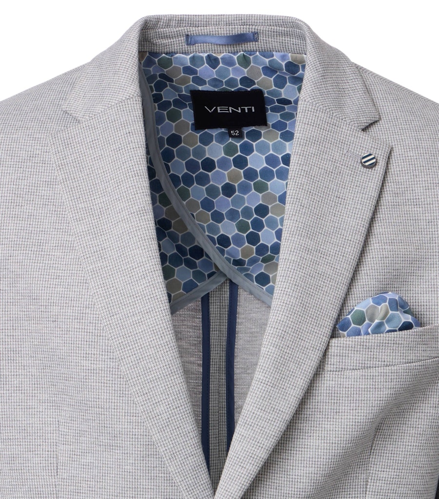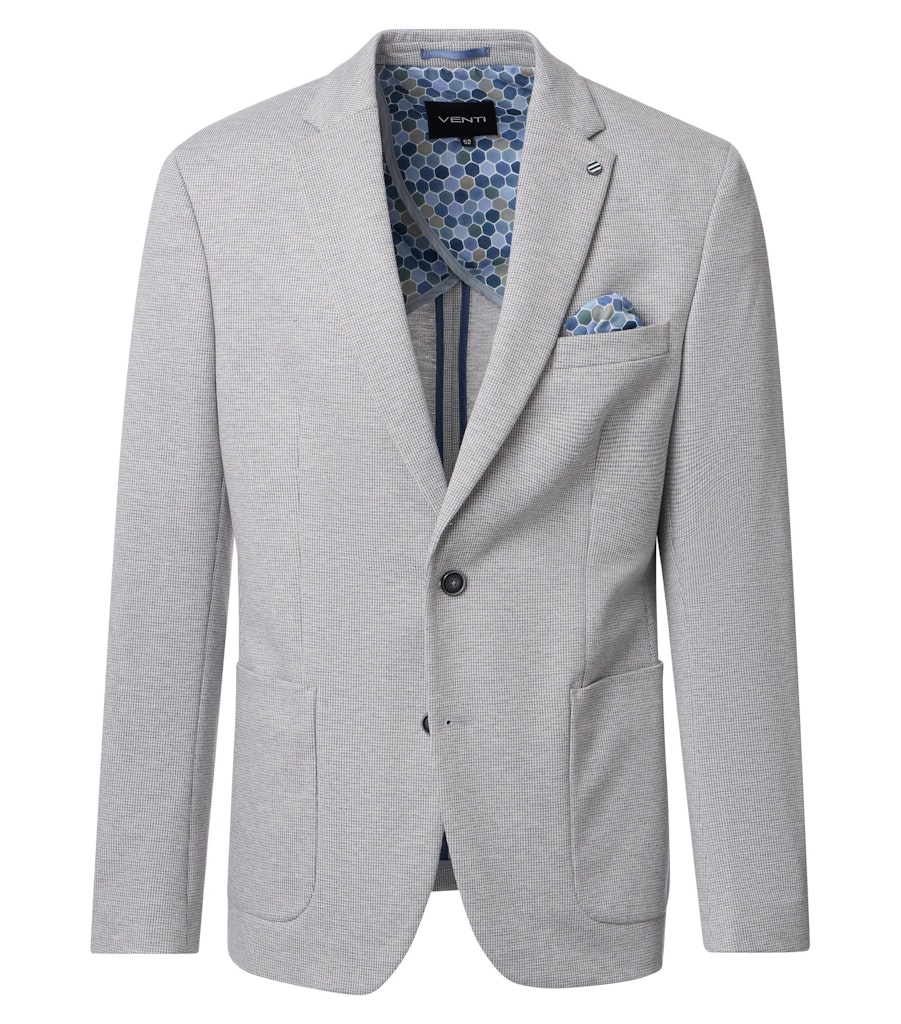 Das hochwertiges Anzugsakko überzeugt durch ein modernes Design und setzt auf Stretch für absoluten Tragekomfort. Dank der gestrickten Machart ist das Sakko aus Maschen gefertigt, wodurch es besonders weich und dehnbar bleibt. Zwei seitliche Taschen sowie eine Brusttasche bieten praktischen Stauraum für kleine Utensilien und unterstreichen zudem die Alltagstauglichkeit. Mit dem passenden Einstecktuch erhalten Sie eine elegante Ergänzung, sodass sich das Sakko ideal mit einem stilvollen Hemd oder einer klassischen Stoffhose kombinieren lässt. Die Verarbeitung sorgt dafür, dass Sie sich auch an langen Tagen rundum wohlfühlen. Ob für geschäftliche Anlässe, einen wichtigen Termin oder festliche Gelegenheiten, dieses hochwertiges Anzugsakko verbindet Komfort,Stil und Funktionalität für ein professionelles Erscheinungsbild.