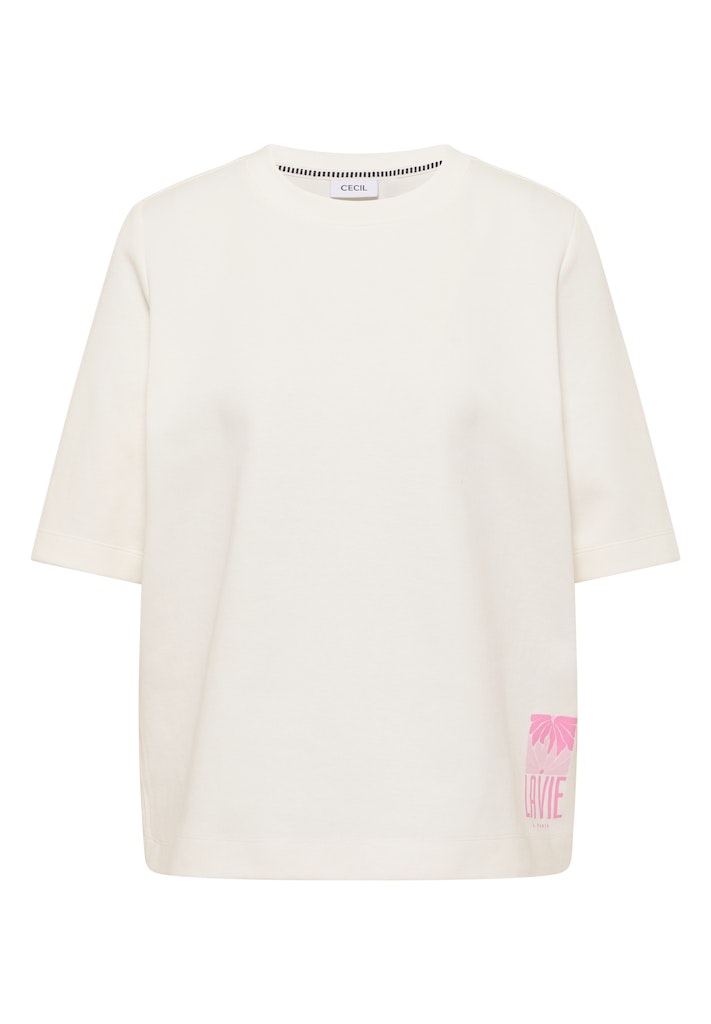 Dieses Sweatshirt von CECIL für Damen bringt mit seinem Backprint sommerliche Frische in deinen Look. Die softe Baumwollmix-Qualität trägt sich angenehm leicht. Rundhals und kurze Ärmel unterstreichen den modernen Stil. Ideal für warme Tage und unkomplizierte Freizeit-Outfits. Baumwollmix Sweatshirt Casual Rundhals Kurzarm Modern und sommerlich Material: 84% Baumwolle, 16% Polyester