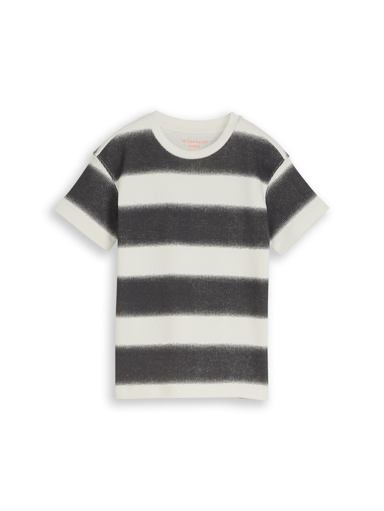 Oversize T-Shirt in Blockstreifenmuster aus einem strukturierten Baumwollstoff in Waffeloptik.