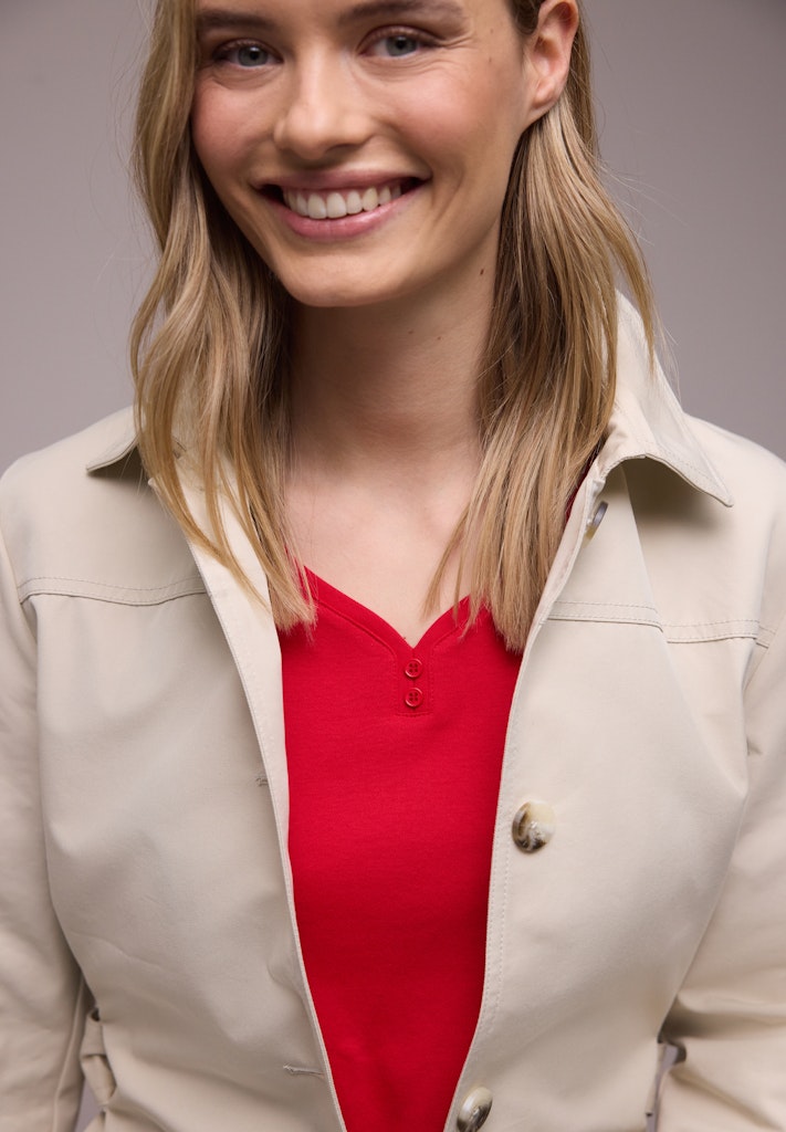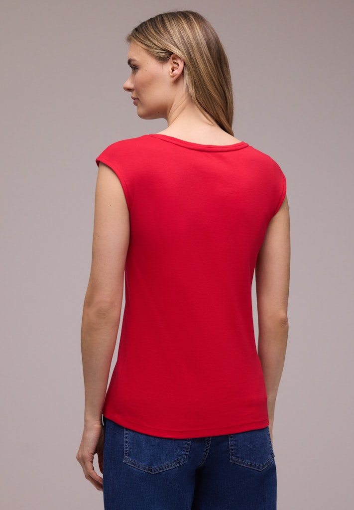 Dieses ärmellose Shirt von Street One für Damen begeistert mit einem weichen Baumwoll-Modalmix und einem sanft gerundeten V-Ausschnitt mit Knopfdetail. So ist das Jerseyshirt ein vielseitiger Stylingpartner. Der lässige Fit sorgt für angenehmen Komfort – perfekt für warme Tage und entspannte Casual-Looks. Die unifarbene Optik rundet das Design ab. Jerseyshirt Casual Gerundeter V-Ausschnitt Ärmellos Schlicht und vielseitig Material: 50% Baumwolle, 50% Modal
