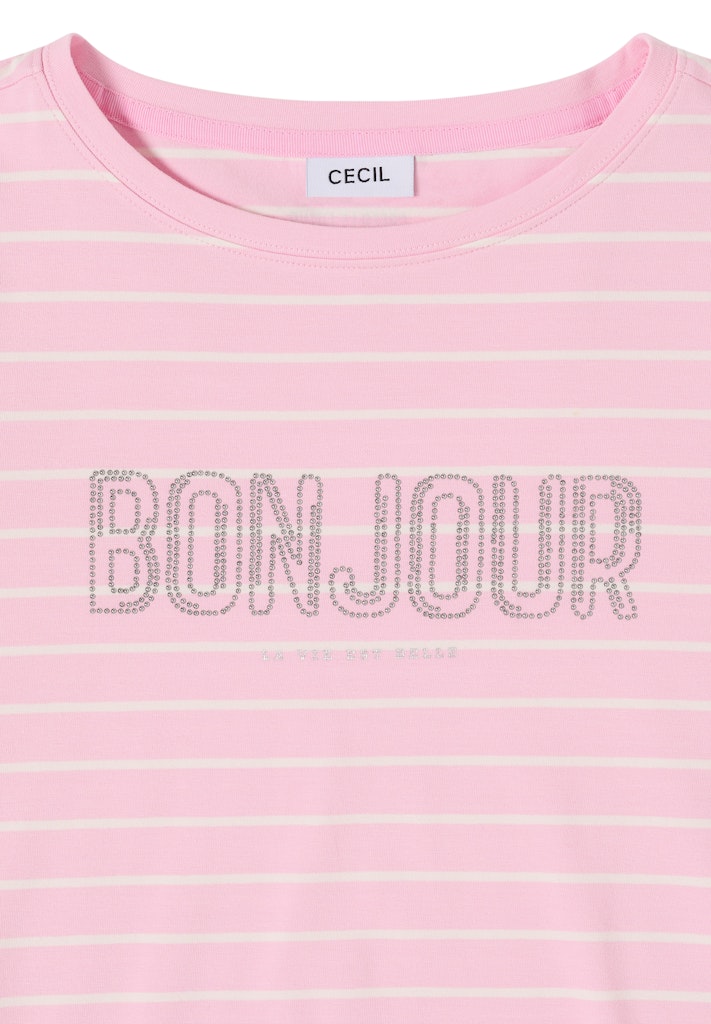 Das Streifen-Shirt von CECIL für Damen überzeugt mit sportivem Charme und angenehmem Tragegefühl. Der U-Boot-Ausschnitt und der dezente Wording-Print setzen moderne Akzente. Dank Baumwollqualität mit Stretchanteil sitzt das Jersey T-Shirt bequem im Alltag. Ideal für lässige Casual-Looks. Jersey T-Shirt Casual U-Boot-Ausschnitt Kurzarm Angenehm zu tragen Material: 95% Baumwolle, 5% Elasthan