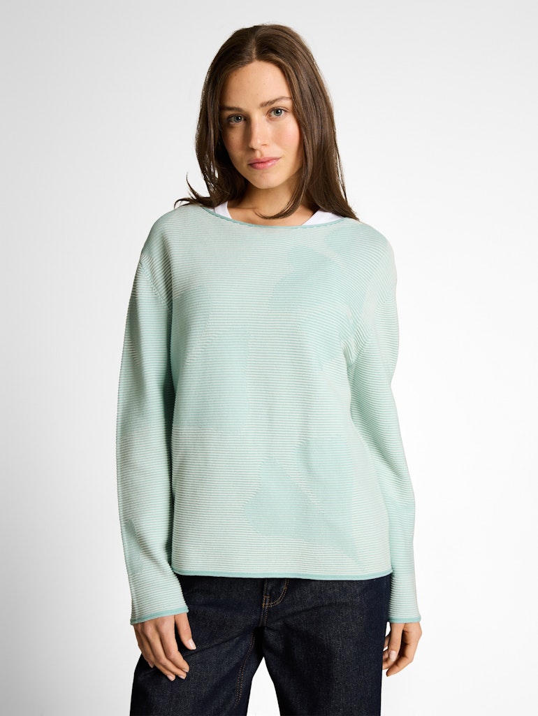 Strukturierter Pullover aus Baumwolle mit feinem Streifenmuster und gerollten Saumkanten