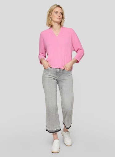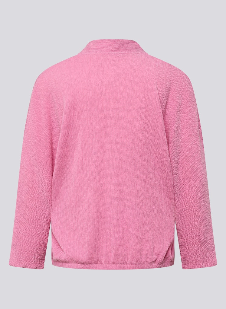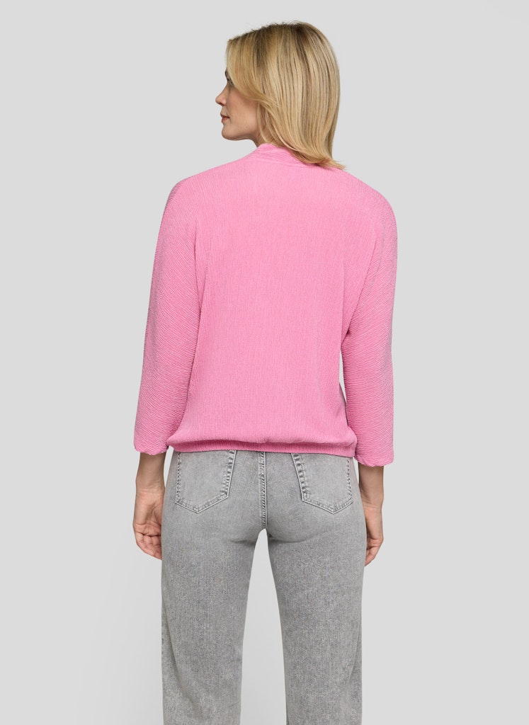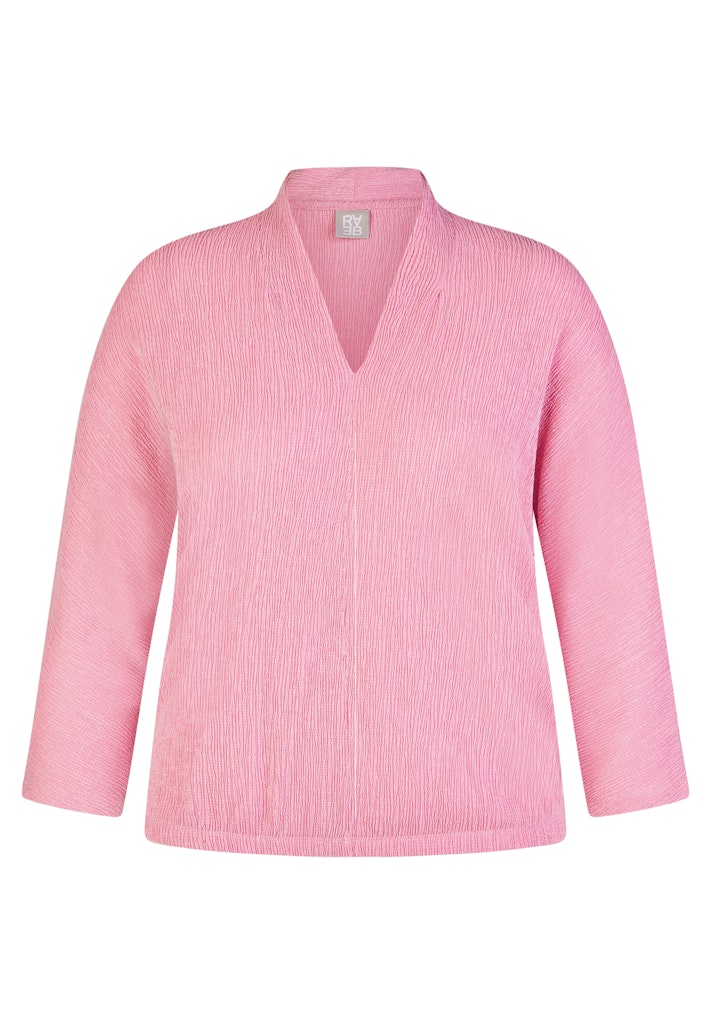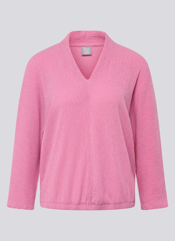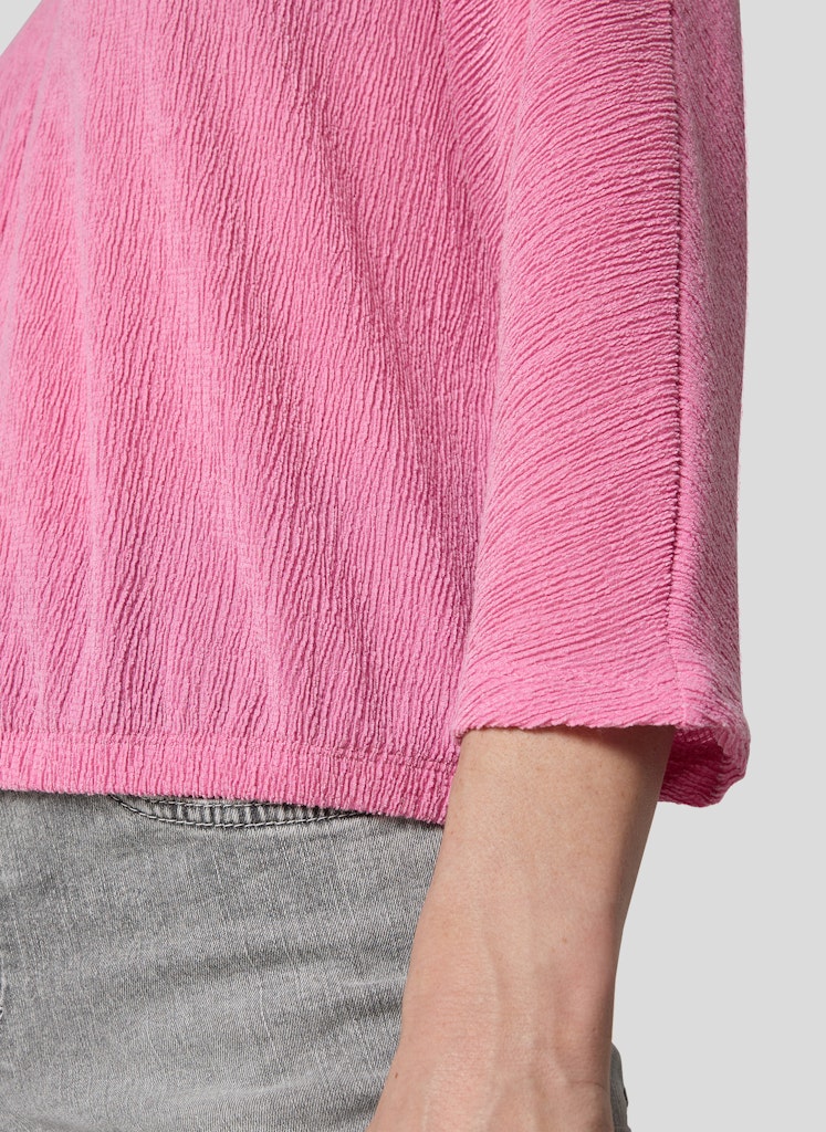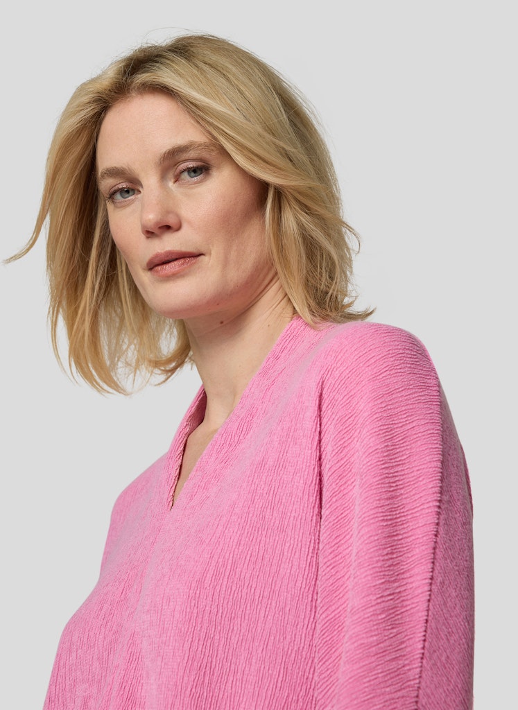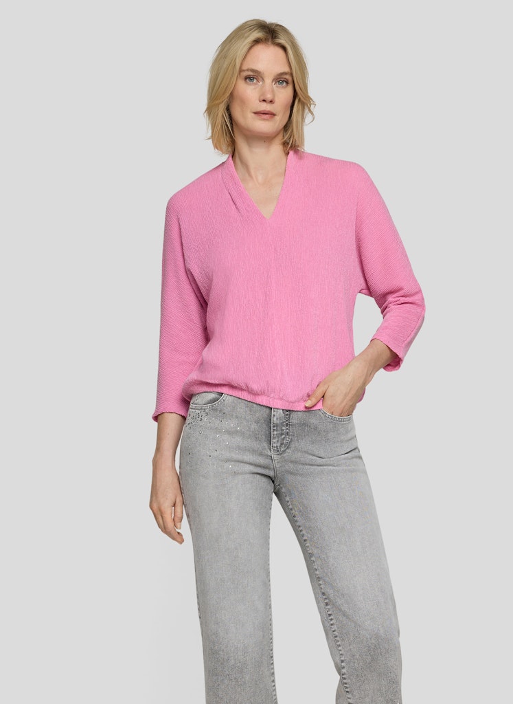 Dieses Shirt präsentiert sich mit einem schmeichelnden V-Ausschnitt und einer feinen Crinkle-Struktur, die dem Modell eine lebendige Oberfläche verleiht. Der Materialmix aus 89 % Polyester, 10 % Viskose und 1 % Elasthan sorgt für eine pflegeleichte Qualität mit weichem Griff und angenehmer Elastizität. Der elastische Saum unterstreicht die lockere Passform und bietet hohen Tragekomfort im Alltag. Feine Crinkle-Struktur. V-Ausschnitt. Elastischer Saum. Pflegeleichter Materialmix. Angenehm elastisch.