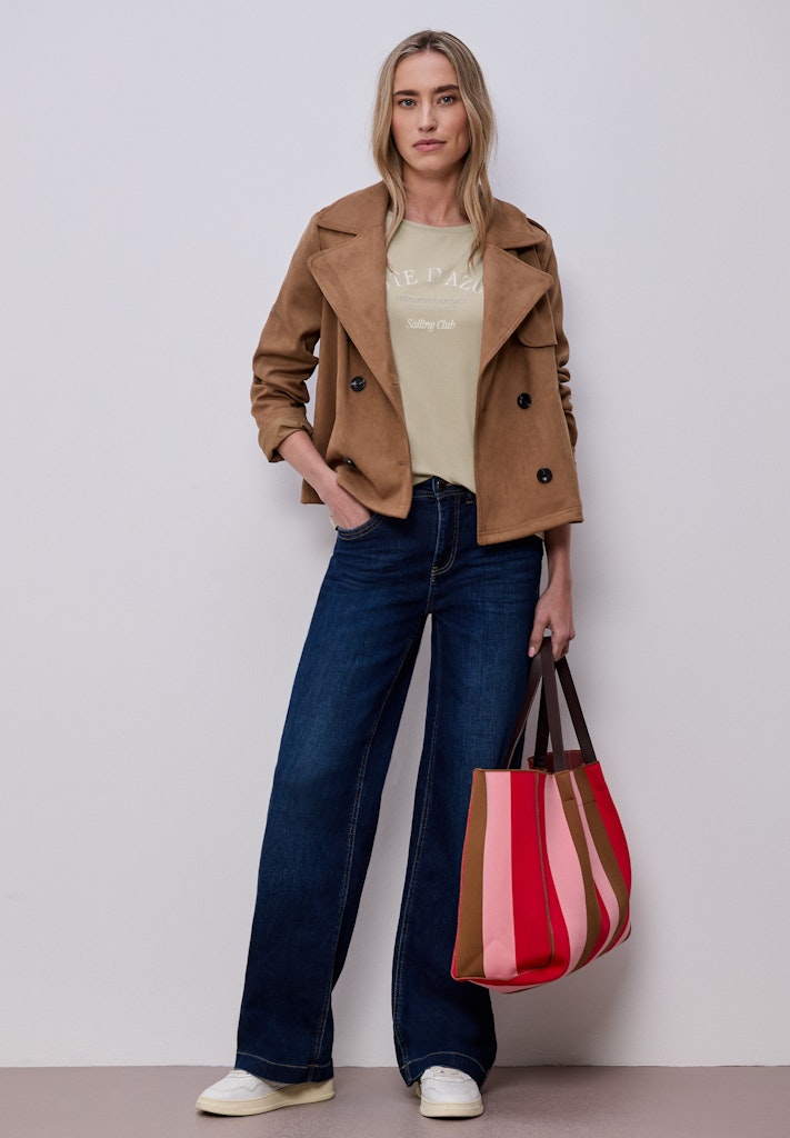 Das T-Shirt von Street One für Damen bringt mit seinem Wording-Artwork eine trendige Note in deinen Alltag. Die leichte Viskosequalität mit Stretchanteil fällt weich und sorgt für ein besonders angenehmes Tragegefühl. Der Rundhalsausschnitt und die Kurzarmform runden den lässig-femininen Look ab. Ein stilvolles Shirt, das vielseitig einsetzbar ist. Jerseyshirt Casual Rundhals Kurzarm Stilvoll und vielseitig Material: 95% Viskose, 5% Elasthan