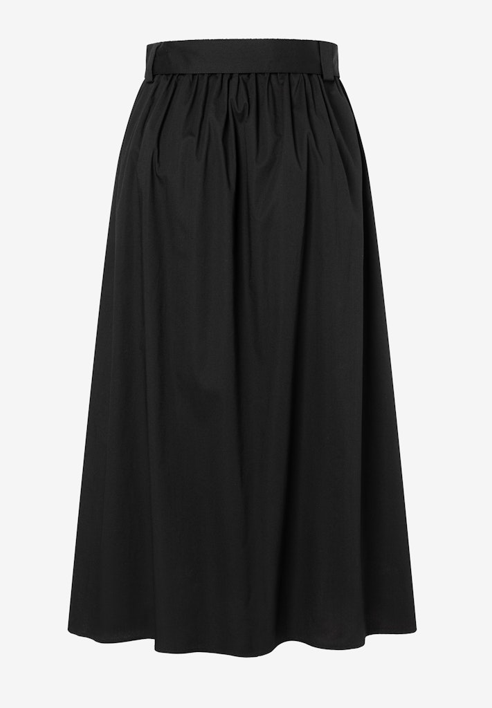 Den weit-ausgestellten Baumwollrock von MORE & MORE mit breitem Bindegürtel und Kellerfalten vorne können Sie ganz casual mit T-Shirt und Sneakers stylen oder aber etwas eleganter mit Blusentop und Heels.