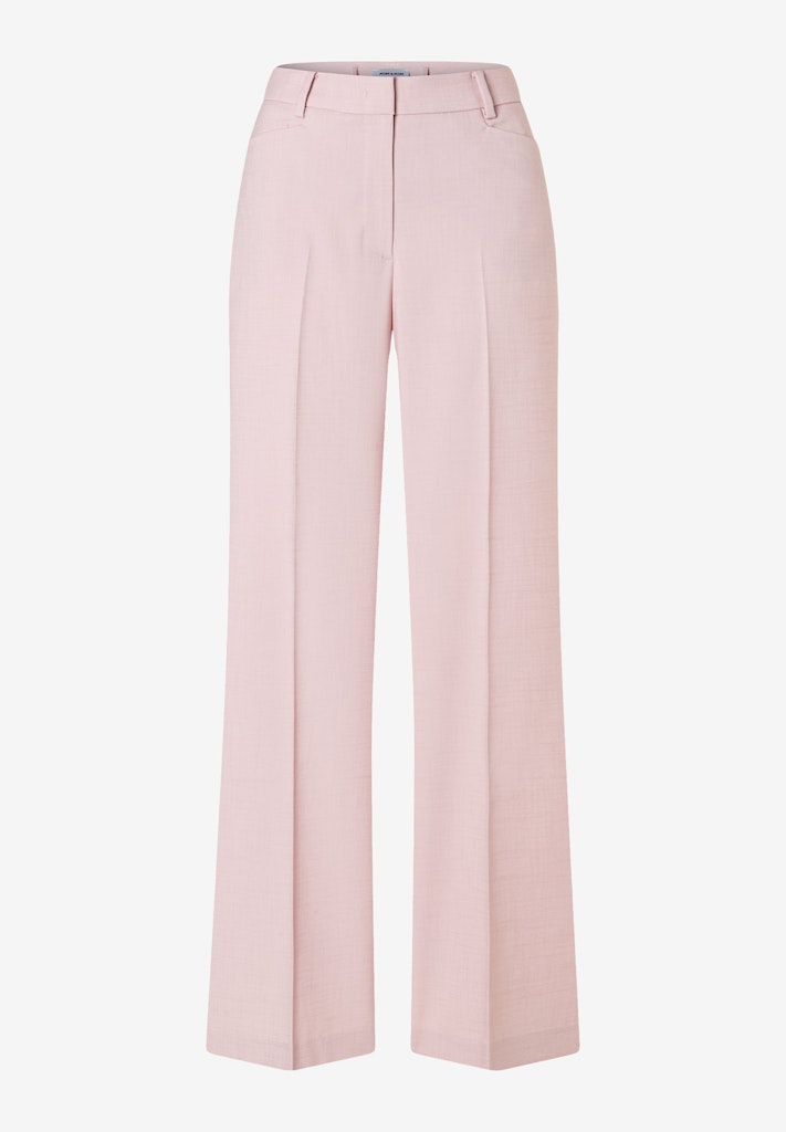 Die moderne Anzughose von MORE & MORE mit weitem Bein und Bügelfalte verkörpert zeitlose Klasse und sorgt für einen eleganten, hochwertigen Look. Die weite Silhouette bietet ein angenehmes Tragegefühl, während der zarte Rosaton der klassischen Hose eine feminine Note verleiht. Ob im Office mit passendem Blazerjäckchen, beim Dinner mit Chiffontop und Heels oder aber lässig mit T-Shirt und Jeansjacke - die gepflegte Anzughose ist ein vielseitiges Key-Piece für selbstbewusste Looks mit Stil.