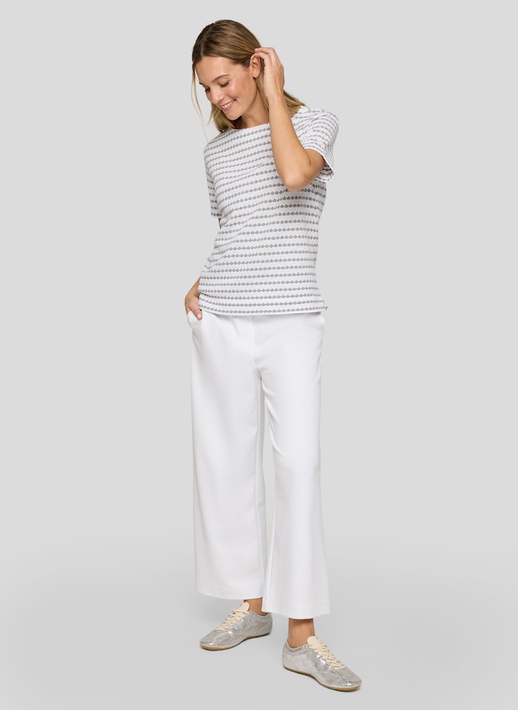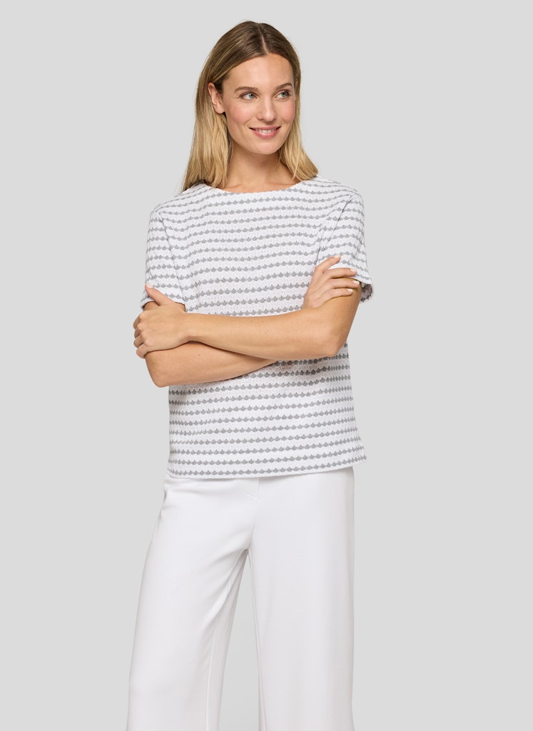 Dieses Shirt überzeugt mit einer feinen Struktur und einem harmonischen Allover-Muster. Der klassische Rundhalsausschnitt und die kurzen Ärmel sorgen für eine zeitlose Silhouette. Die Materialmischung bietet angenehmen Tragekomfort, ist formstabil und pflegeleicht _ ideal für vielseitige Alltagslooks. Feine Strukturqualität. Klassischer Rundhalsausschnitt. Angenehmer Materialmix. Pflegeleicht und formstabil. Vielseitig kombinierbar.