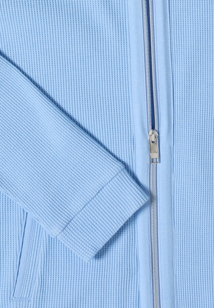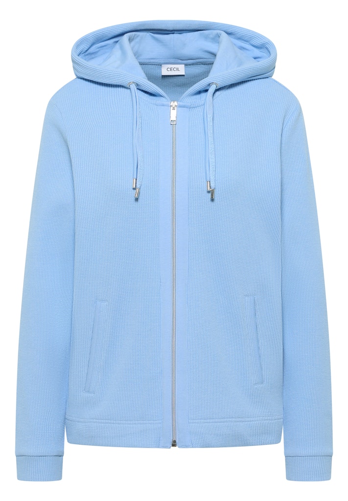 Diese gestreifte Hoodie Jacke von CECIL für Damen verbindet sportiven Stil mit bequemer Sweatqualität. Kapuze mit Tunnelzug und Reißverschluss machen sie alltagstauglich und vielseitig. Seitliche Taschen bieten Platz für Kleinigkeiten. Perfekt für lässige Freizeit-Looks. Leichte Sweatjacke Casual Kapuze Langarm Sportiv und vielseitig Material: 80% Baumwolle, 15% Polyester, 5% Elasthan