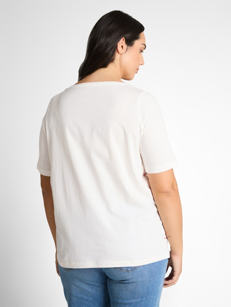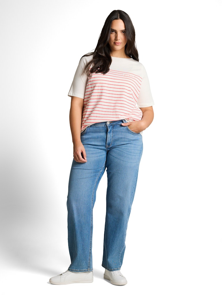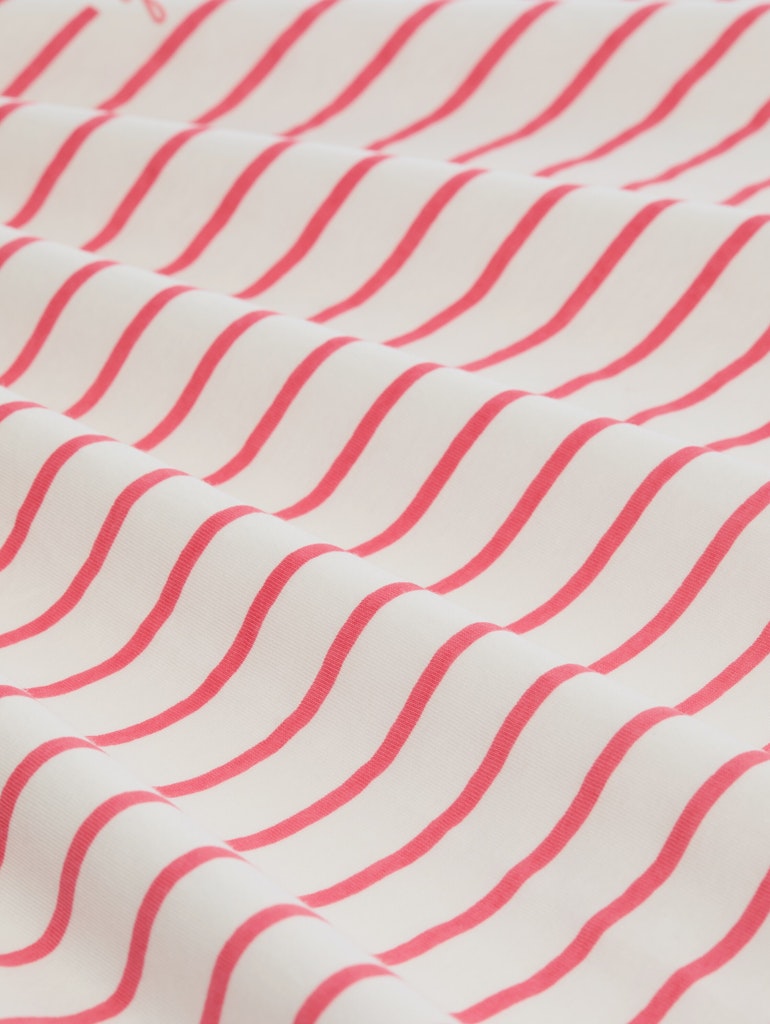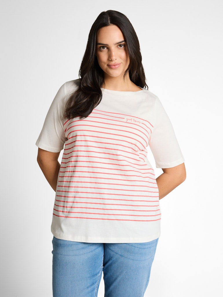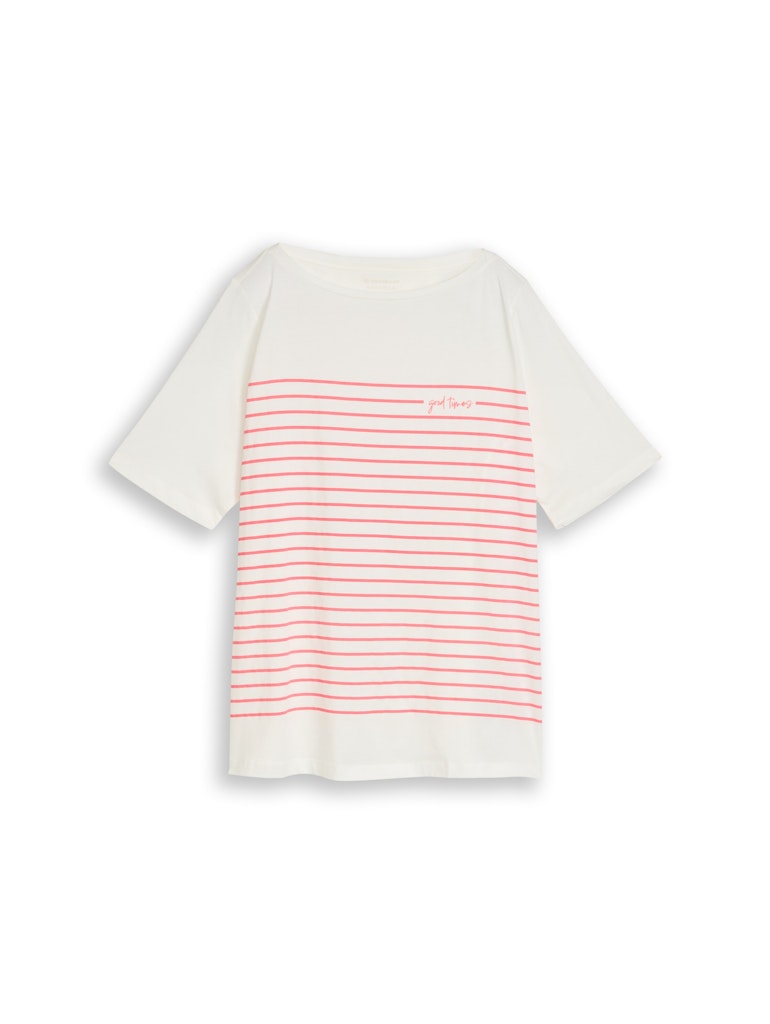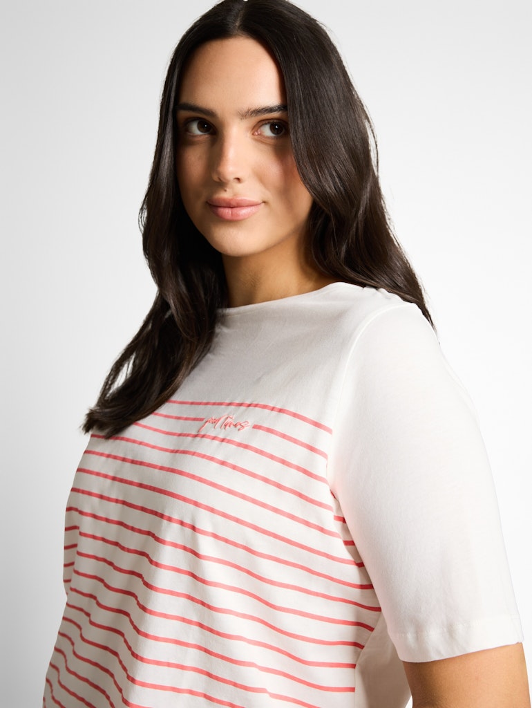 T-Shirt mit Halbarm und U-Boot-Ausschnitt. Mit Streifenmuster auf der Vorderseite und Schriftzug auf der Brust. Aus einem Single-Jersey-Stoff aus Baumwolle.