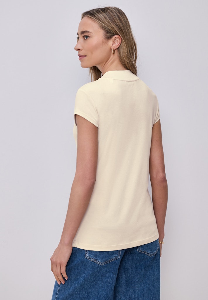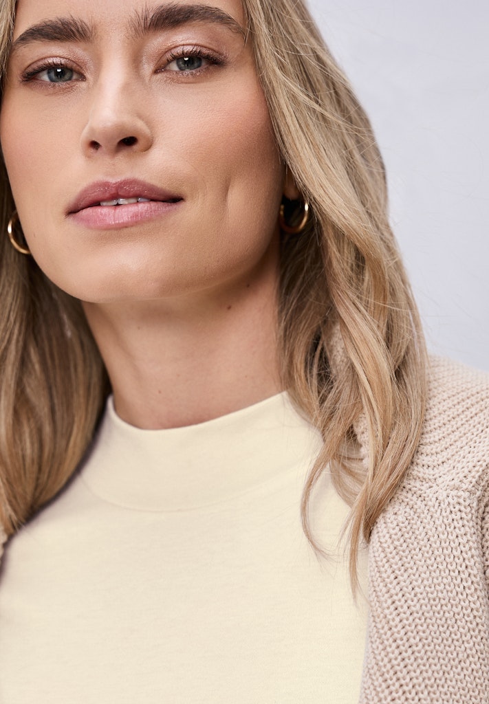 Das Basic Shirt von Street One für Damen bietet dir mit seinem soften Baumwoll-Modalmix ein angenehm weiches Tragegefühl. Der Turtle Neck setzt einen modernen Akzent und macht das kurzärmelige Oberteil zu einem vielseitigen Allrounder. Die unifarbene Optik erleichtert dir jede Kombination. Ideal als Layering-Piece oder solo getragen für einen cleanen, zeitgemäßen Look. Jerseyshirt Casual Turtle Neck Kurzarm Schlicht und vielseitig Material: 50% Baumwolle, 50% Modal