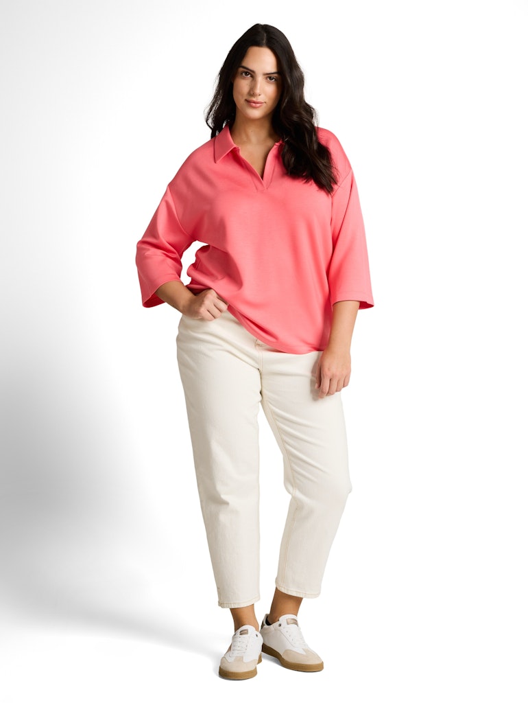 Plus Size - Loose Fit Scuba Langarmshirt mit Polokragen