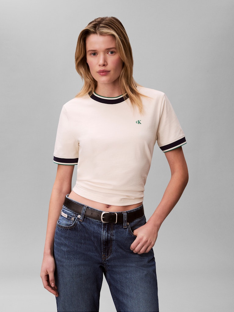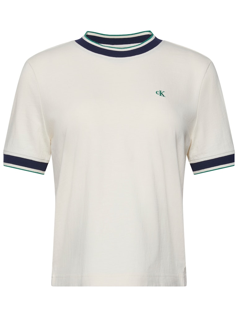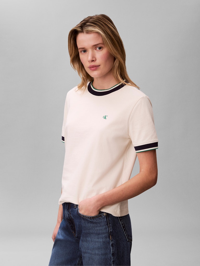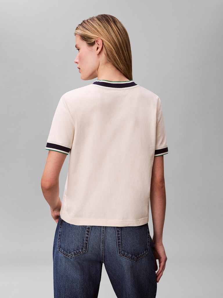 SS CTN MONOGRAM STRIPE TRIM TEE